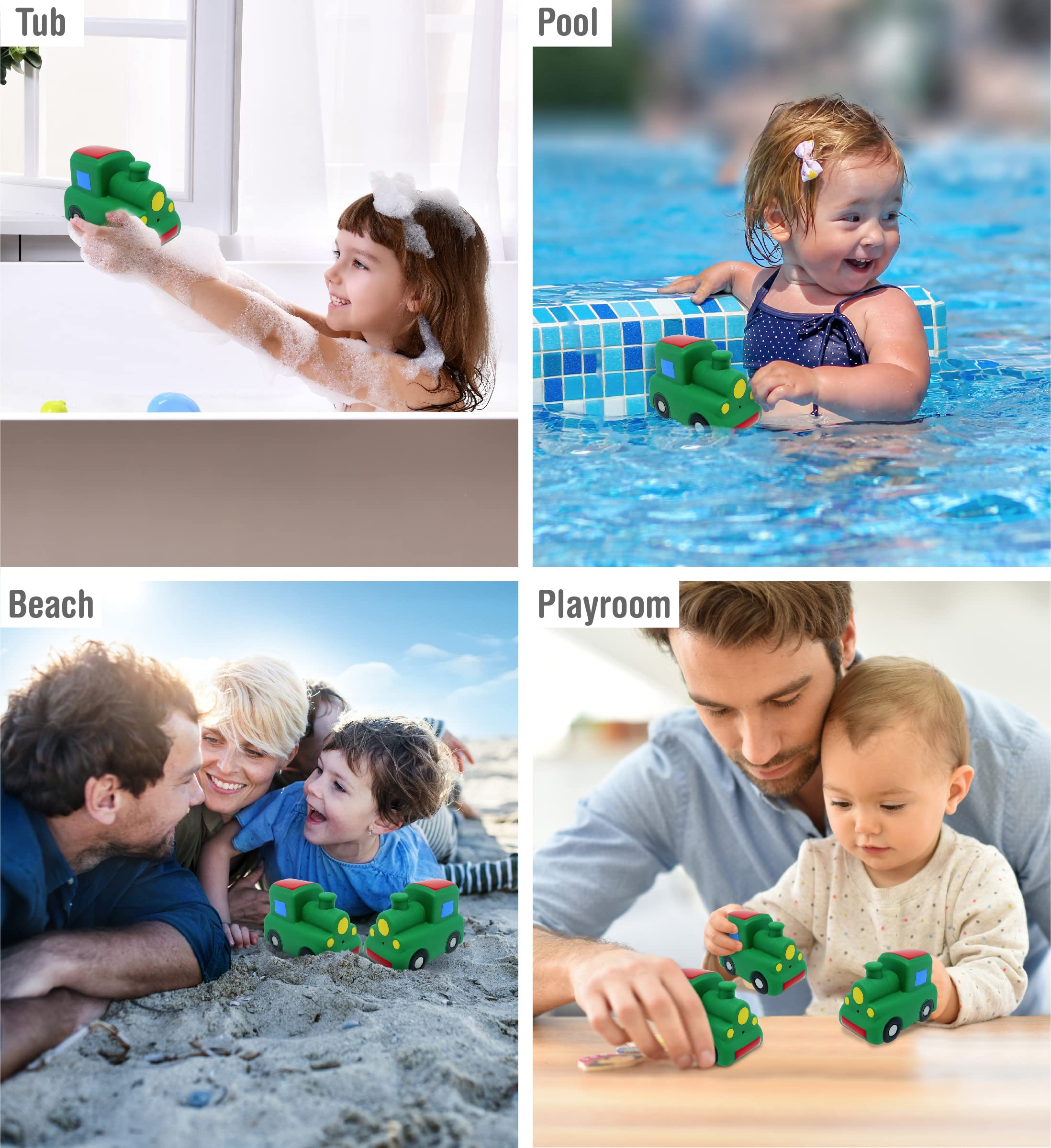 Entertain your little one with cute tub transportation toys that will make them want to take a bath every single day. DolliBu Train Squirter Bath Toy is part of our cool transportation collection of bath buddies & makes any water activity a joyous one. Ideally suited for the bath, pool, or the beach. Designed with lively colors & crafted with a perfect size for little hands to hold & squeeze. Cute transportation bathtub toys or bathing toys are great for educating little children & expanding their knowledge about trains & colors. Perfectly sized baby tub toy that can be played within the bathtub or in the pool for endless fun, & can also be played outdoors for imaginative pretend play. Use as toy decor for an trains-themed room! Train-shaped baby water floaties also make cute gifts for little kids. Make your kids look forward to bathtime! Bath squirties are perfect floating toys for kids who enjoy spending time in the water. A fun toy to play & share with siblings & friends in a tub , pool or sandy beach. Perfect for parents who want to make bath time a fun & educational learning experience for their children. Ideal baby shower gift for expecting mothers or a party favors. Includes 1 Train Bath Buddy Squirter Toy for kids. The transportation bath toy features smooth, soft, & rounded edges to ensure the safety of children while enjoying fun water games. Designed with cute cartoon eyes & soft rubber design. The adorable train shoots out water from a tiny hole when squeezed. Train Bath Buddy Squirter is a floating bathtub or pool toy, made of premium quality rubber materials. The train toy is durable, lightweight & is colored with non-toxic materials, which makes it safer & easier for children to play in the shower or while enjoying a swim. Preserve this cute bath squirter toy by hand washing, squeeze out all water, & letting it completely dry before the next use to prevent any build-up. Train baby float squirter toy measures 3", perfect fit for babies' hands.