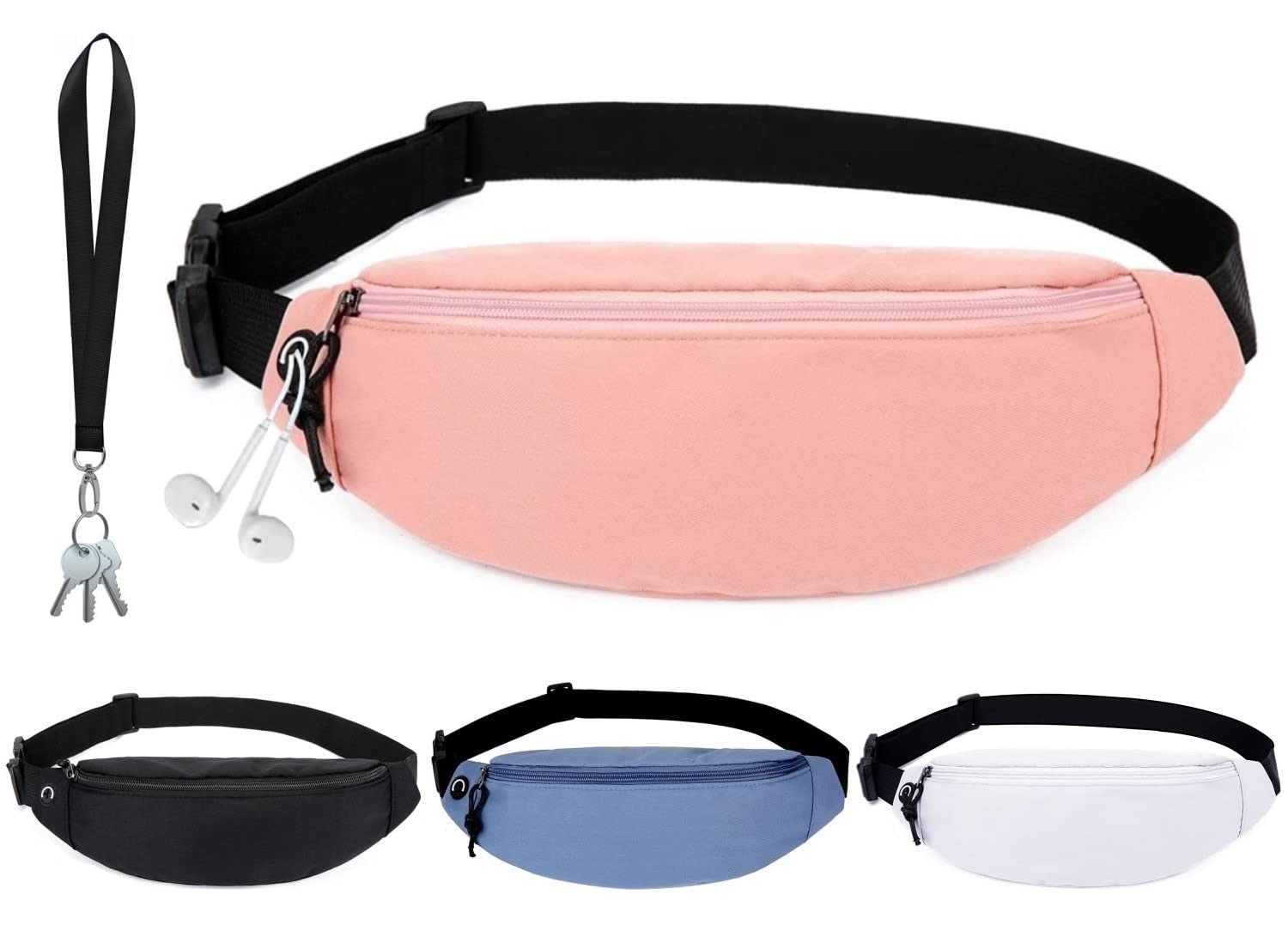 DORNNA® Sports Fanny Pack for Men and Women Fabric with Adjustable Belt for Outdoor Workout, Hiking, Travel and Casual, Free Key Pendant Gift, pink, MEDIUM