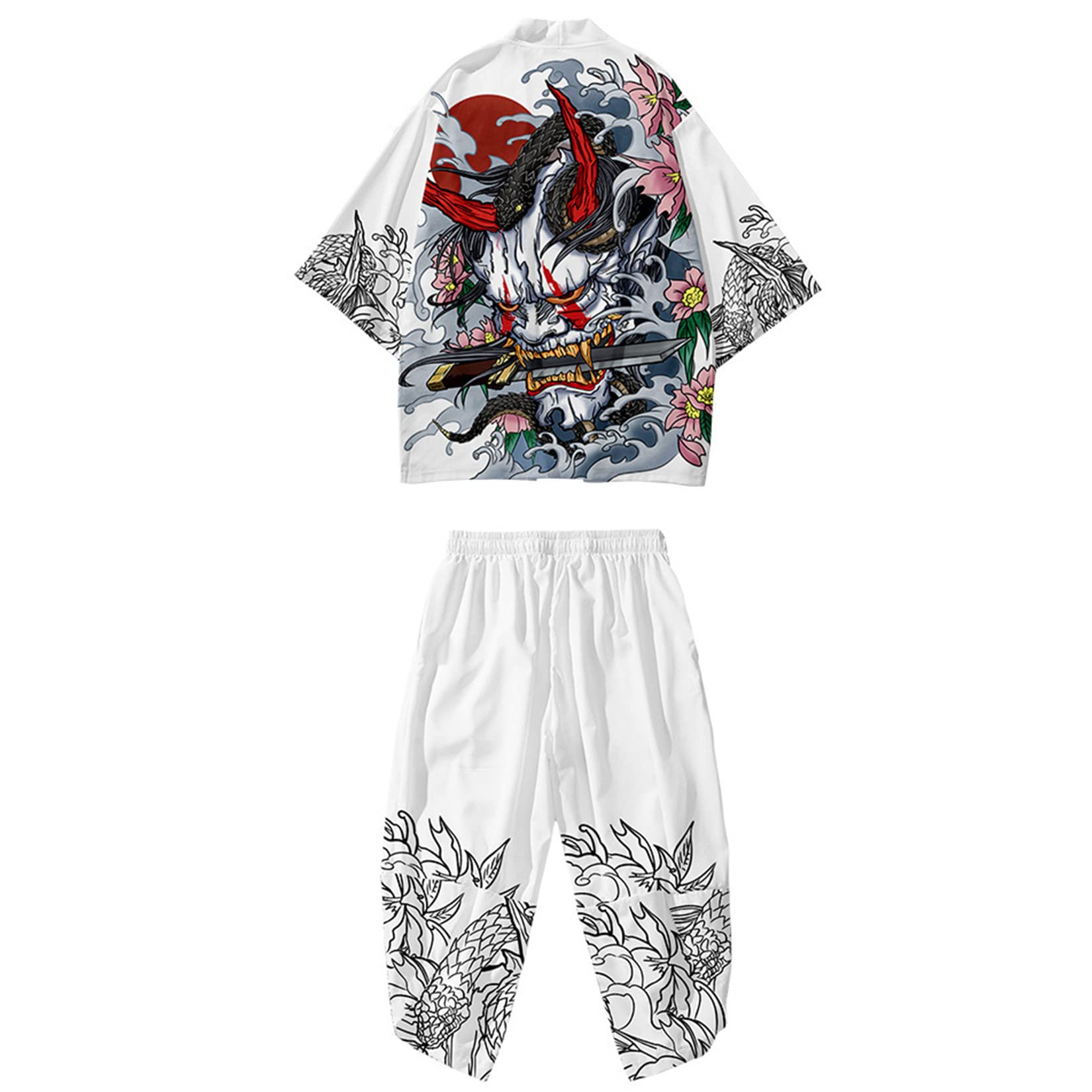 DOSLAVIDA Men's Japanese Kimono Jacket Set Stylish Open Front Coat With Shorts Chinese Style Printed Cardigan Suits