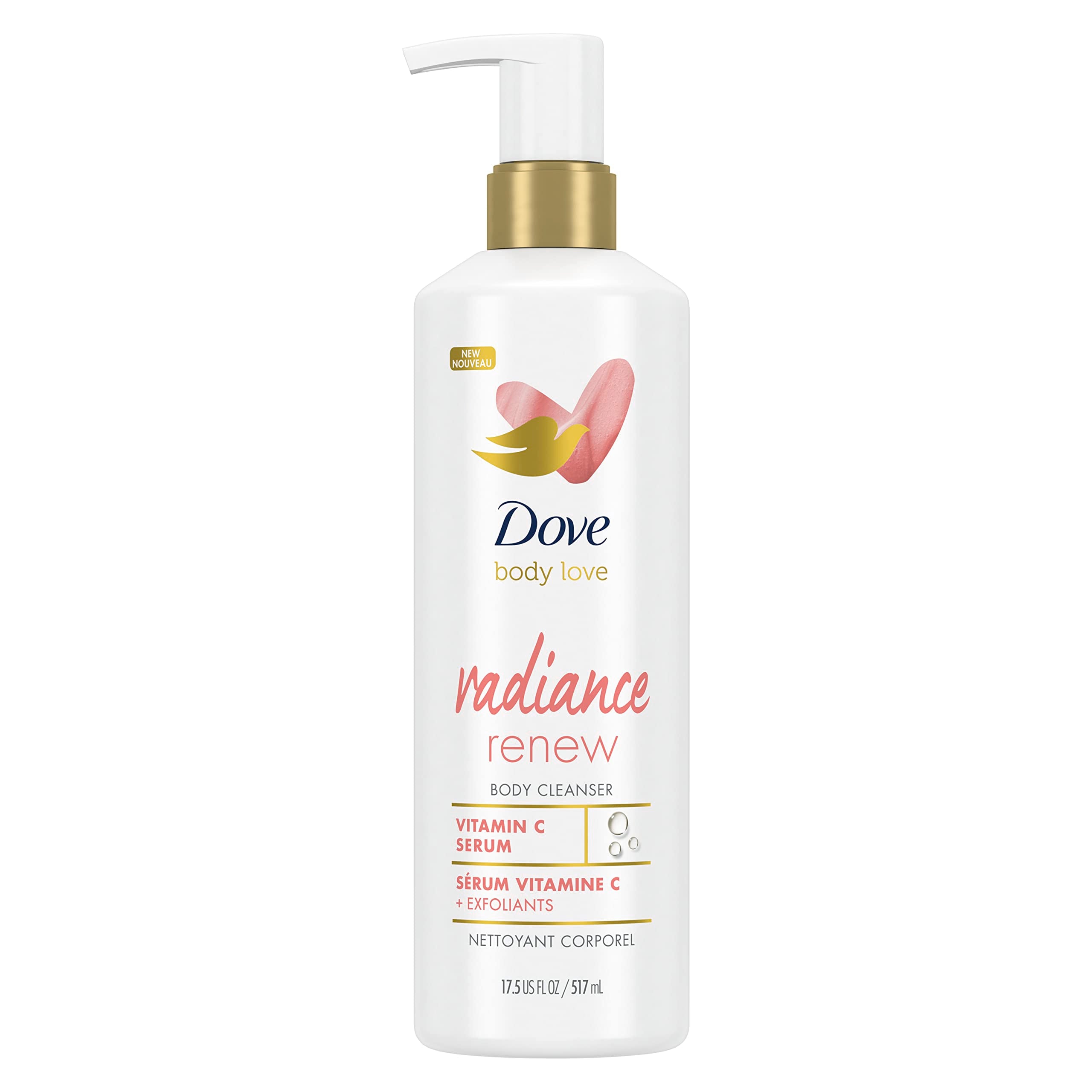 Ready to show your body some love? Dove Body Love Radiance Renew Body Cleanser is formulated with face care ingredients like vitamin C serum and exfoliating minerals. The unique formula buffs away dead skin to reveal more radiant-looking skin, so you can treat your body with the extra care it deserves, just like you do to your face. Formulated with Dove 10X Moisture Boost Complex,* this rich and creamy body cleanser hydrates and brightens dull and uneven skin, to leave it exfoliated and beautifully nourished. Just like your favorite face care, this cleanser with vitamin C serum is specially made to brighten and deeply hydrate dull, uneven skin. With active levels of natural exfoliating minerals, this cleanser for body care is specially formulated with face care ingredients to give your skin a boost of radiance, with Dove 10X Moisture Boost Complex* delivering a little extra TLC for your body. This paraben and sulfate free cleanser is also as gentle as water, and is formulated with plant-based-cleansers and suitable for uneven skin care routines. It is also PETA-certified cruelty-free and made in 100% recycled plastic bottles.