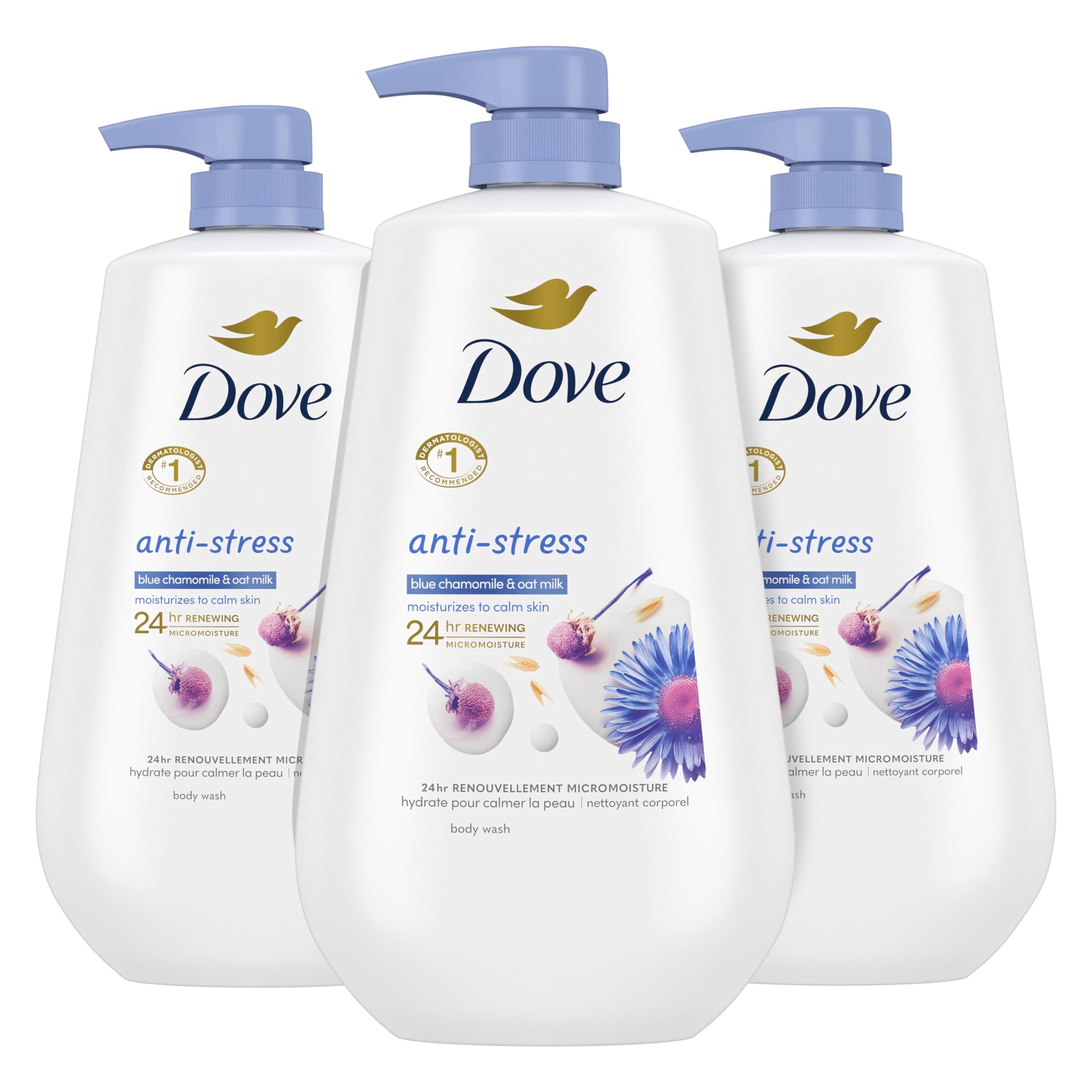 Moisturize your skin and calm your senses with Dove Anti-Stress Body Wash. This nourishing body wash, with 24hr Renewing MicroMoisture, gently cleanses and moisturizes the skin, leaving it renewed and healthy-looking for 24 hours. From the #1 dermatologist-recommended body wash brand, this restoring body wash has a luxurious lather you’ll love to use in the shower after a long day. Dove Anti-Stress Body Wash has been developed with millions of MicroMoisture droplets and plant-based moisturizers, creating a formula that works to gently cleanse and moisturize skin and nourish your microbiome - skin’s living protective layer. Infused with blue chamomile scent and oat milk, this nourishing body wash also moisturizes your skin and calms your senses. As a specially designed body wash for soft skin, your skin will feel as soft as it looks. This moisturizing body wash also has a 98% biodegradable formula*. *98% of ingredients break down into carbon dioxide, water and minerals (OECD test methods 301, 302 and/or 310). This gentle skin cleanser is packaged in 100% recycled plastic bottles, vegan, and Dove is PETA approved, meaning we do not test on animals, anywhere in the world, so you can feel good about switching to Dove. Plus, this hydrating body wash is made without sulfates or parabens. How to use: To soften and renew your skin with this body wash, squeeze a generous amount of Dove Anti-Stress Body Wash into your palms. Massage the hydrating body wash onto your skin, taking a moment to enjoy the rich lather and relaxing fragrance, before rinsing off to reveal soft, smooth skin. Dove care goes further than moisturizing skin care with 100% recycled plastic bottles and globally, Dove is PETA approved. At Dove, our vision is of a world where beauty is a source of confidence, and not anxiety. So, we are on a mission to help the next generation of women develop a positive relationship with the way they look-reaching over ¼ of a billion young people with self-esteem education by 2030. We are also committed to a landmark new initiative as part of our 2025 commitment to reduce plastic waste; reducing over 20,500 metric tons of virgin plastic annually by making the iconic beauty bar packaging plastic-free globally; launching new 100% recycled plastic bottles; and trialing a new refillable deodorant format that reduces plastic over time. As one of the largest beauty brands in the world, we are revealing an agenda-setting commitment to tackle the global beauty industry’s plastic waste issue.