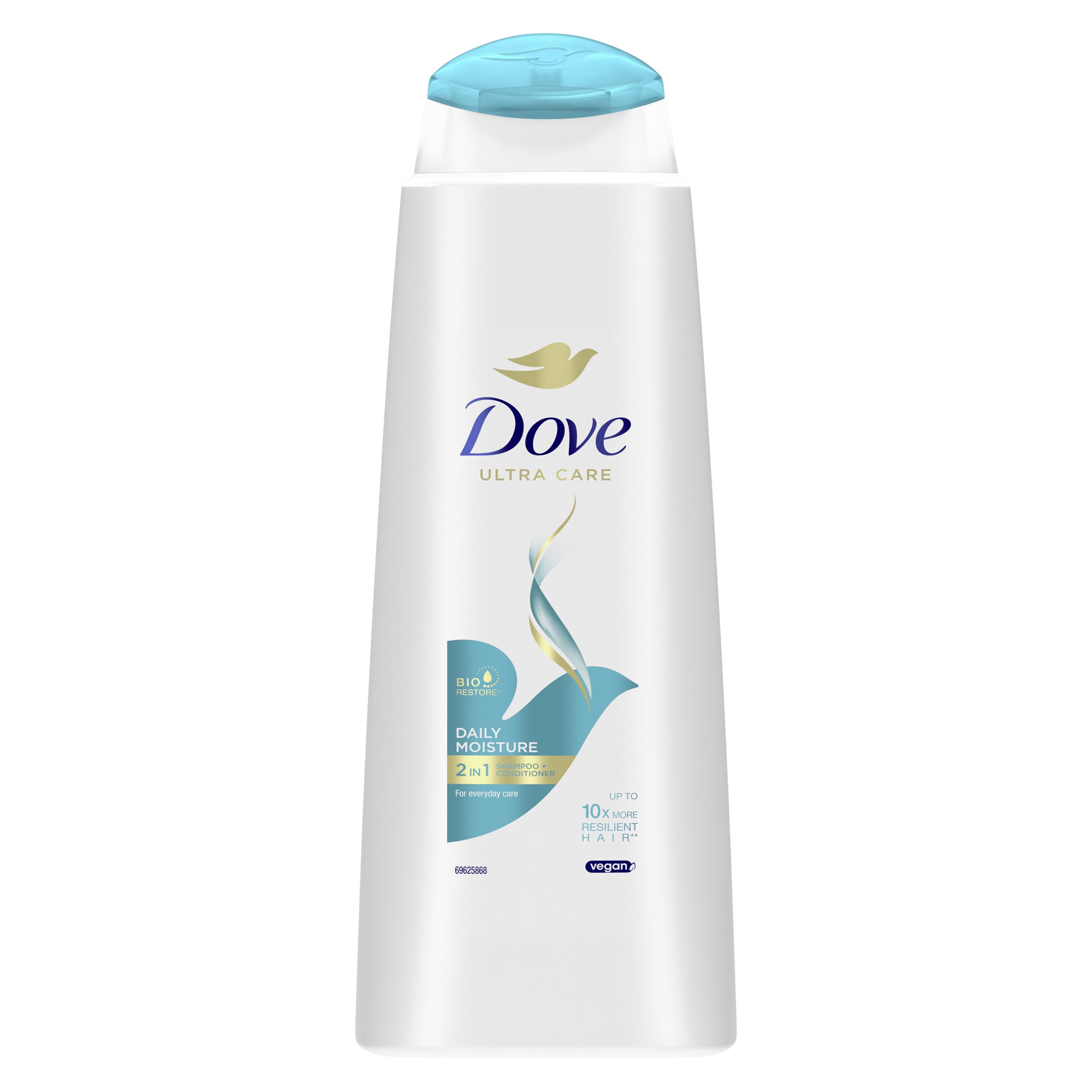 Dove Nutritive Solutions Daily Moisture 2 in 1 Shampoo and Conditioner makes your hair softer, silky smooth and easy to manage. It has been created to nourish and moisturise dry, damaged hair in one simple step. This shampoo and conditioner has a unique formula that helps to enhance and maintain your hair's beauty. As it progressively nourishes with regular use, you will notice that your hair feels healthier after each and every wash. Dove Daily Moisture 2 in 1 Shampoo and Conditioner contains Pro-Moisture Complex, which moisturises hair from deep within the strand and makes hair up to 10x more resilient*. Its formula is lightweight and rinses out easily, so it won’t leave your hair feeling heavy or weighed down. You just get to enjoy silky-soft results, day after day. How to use: Apply Dove Daily Moisture 2 in 1 Shampoo and Conditioner like you would a normal shampoo, lather, and rinse. No need for an additional conditioner to protect and detangle your hair. Simply dry and enjoy softer hair that is easy to manage and style. Suitable for everyday use. Globally, Dove does not test on animals. For the last 30 years, Dove has used alternative non-animal methods to test the safety of its products. PETA certified as Cruelty-Free, Dove products carry PETA’s Beauty Without Bunnies logo for added peace of mind. *Shampoo and conditioner vs non-conditioning shampooIngredientsAqua, Sodium Laureth Sulfate, Glycol Distearate, Sodium Chloride, Lysine HCI, Arginine, Glycerin, Dimethiconol, Dimethicone, Guar Hydroxypropyltrimonium Chloride, Amodimethicone Cetrimonium Chloride, Parfum, Cocamidopropyl Betaine, Cocamide MEA, TEA-Dodecylbenzenesulfonate, Sodium Lauryl Sulfate, Styrene/Acrylates Copolymer, Mica, Laureth-4, Laureth-23, Poloxamer 407, Xanthan Gum, Trideceth-12, PEG-45M, PEG-4, Silica, Disodium EDTA, Acrylates/Beheneth-25 Methacrylate Copolymer, PPG-12, Citric Acid, Sodium Hydroxide, DMDM Hydantoin, Sodium Benzoate, Methylchlorothiazolinone, Methylisothiazolinone, Benzyl Alcohol, Butylphenyl Methylpropional, Citronellol, Hexyl Cinnamal, Limonene, Linalool, CI 15985, CI 19140, CI 77891Safety WarningCaution: use only as directed. Avoid contact with eyes. If eye contact occurs wash out immediately with warm water. If irritation occurs discontinue use. As we are always looking to improve our products, our formulations change from time to time, so please always check the product packaging before useManufacturer Contact InformationUnilever Dept ER, Wirral, CH63 3JW, UK.