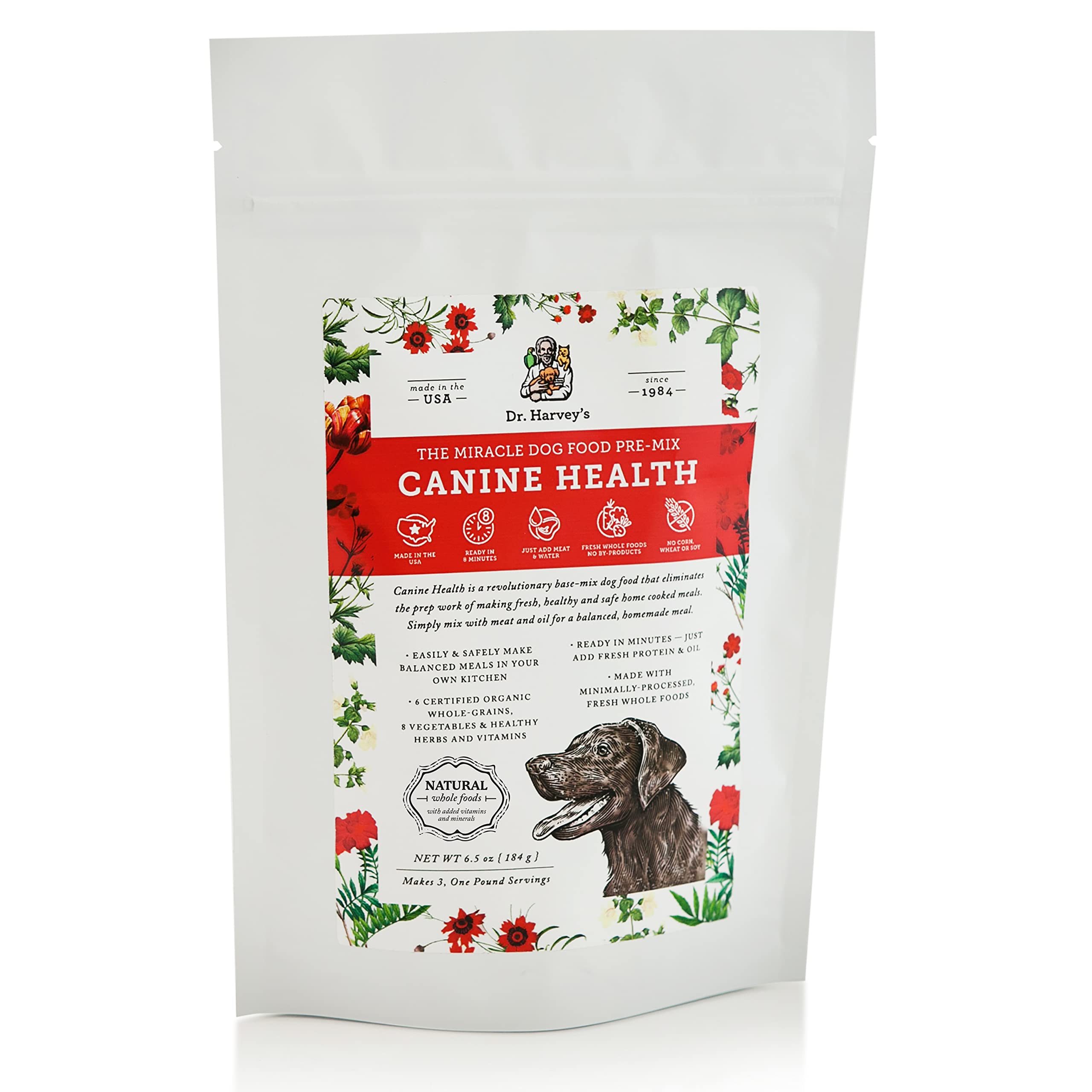 Our Canine Health Premix serves as the foundation for wholesome, home-cooked meals. We make it simple for you to prepare balanced dog food that is perfect for all breeds and sizes dietary requirements. You can simply use it as a nutritional base and then top it with fresh protein (cooked or raw), water, and oil to create a complete meal. It is made from organic grains and vegetables. Feeding fresh with Canine Health will allow you to control the nutritional quality of your pooch’s diet. You can rest assured that your pet companion is getting only human-grade ingredients and not feed-grade. Dr. Harvey uses no preservatives, no coloring agents, and no artificial flavors. Soon, your dog will probably be eating healthier than you are!