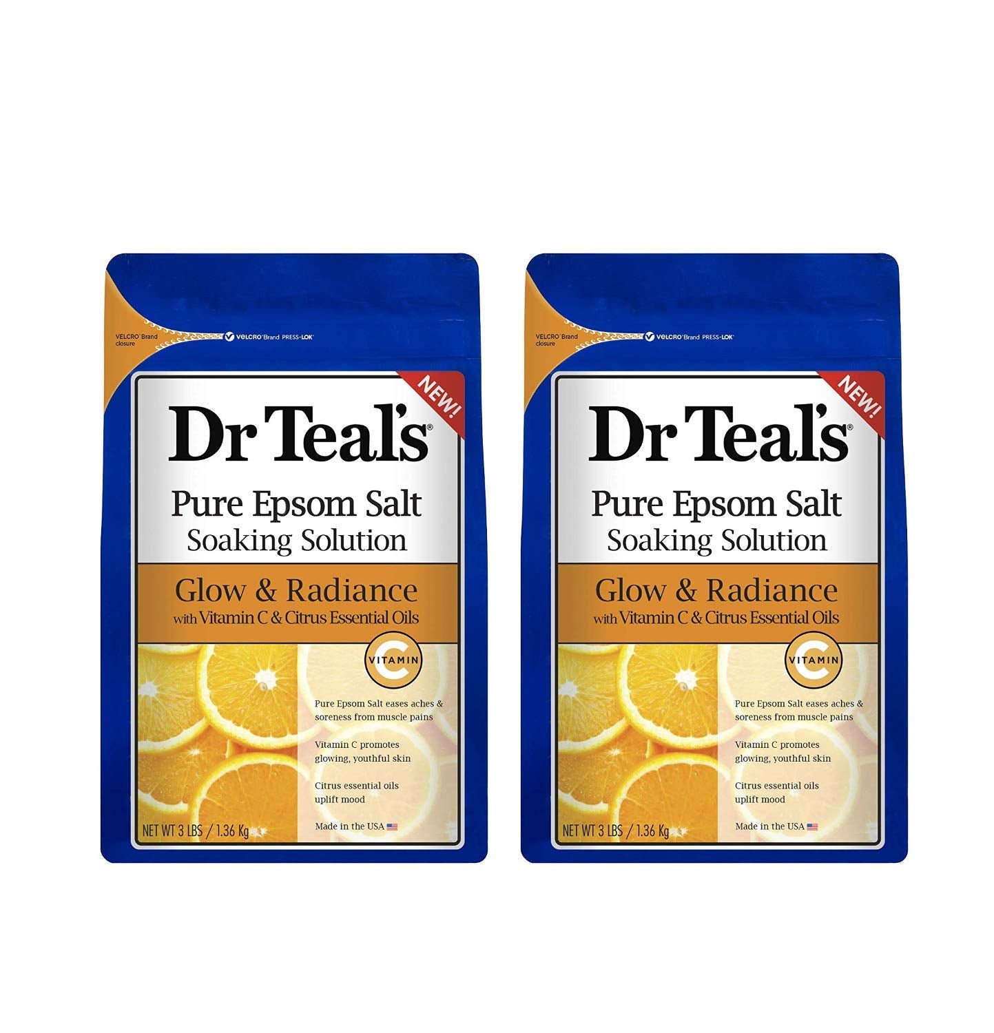 Uplifting Bergamot and Sweet Orange essential oils in the Pink Himalayan salt soothe the senses and help provide relief from stress. Vitamin C promotes glowing, youthful skin and Citrus essential oils are rich with antioxidants and are shown to help uplift your mood. Ease Aches and Soreness: A Dr Teal’s Epsom Salt soak is an easy, achievable way to ease sore muscles after workouts and help speed up recovery. Dr Teal's Soaking Solution can also be applied directly with a washcloth to a sprain or ache, or mixed with your body wash to add exfoliating properties. Includes one 3 lbs bag of Pink Himalayan Epsom Salt and one 3 lbs bag of Vitamin C and Citrus Epsom Salt.