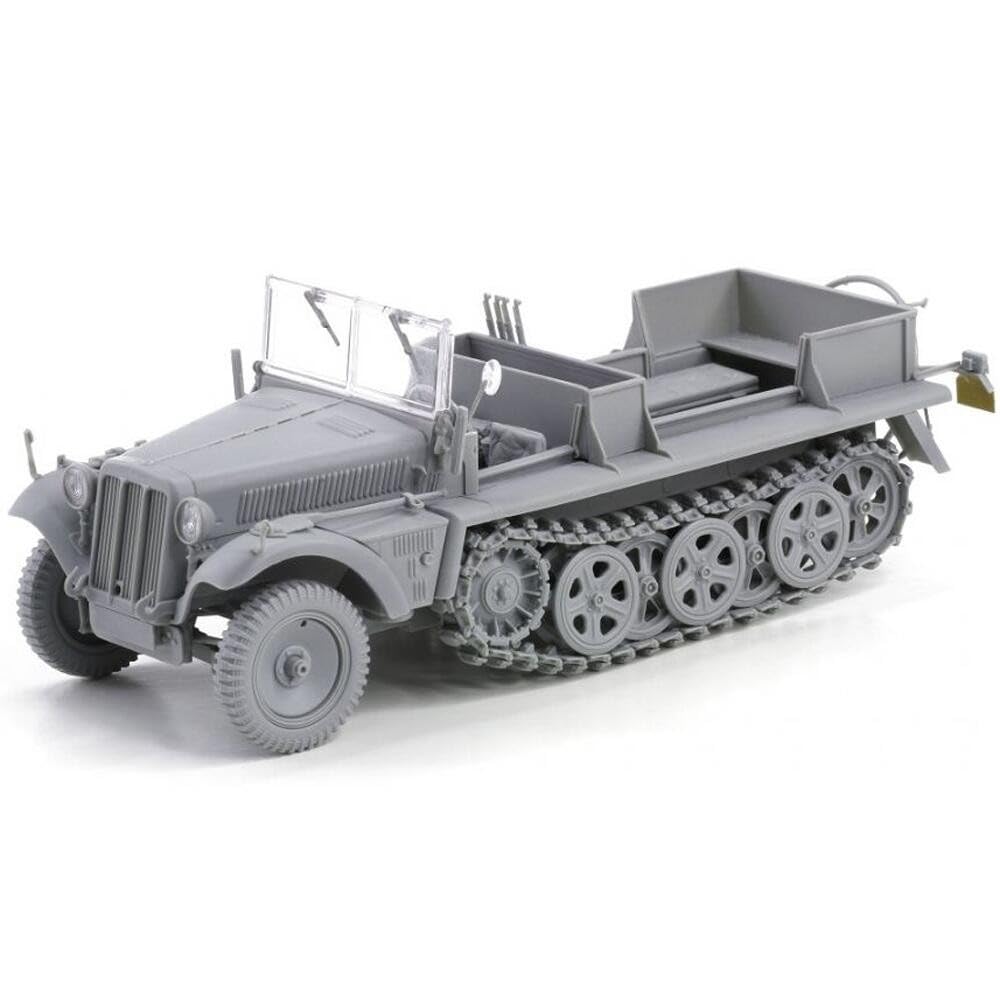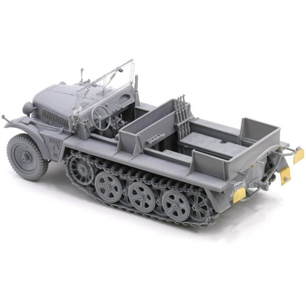 From the ManufacturerDragon is proud to announce the arrival of its long-awaited kit of a 1/35 scale Sd.Kfz.10 halftrack. This important kit helps fill an important gap in model coverage of Germany’s numerous halftrack types. The Sd.Kfz.10 was a light design in the 1-ton-payload class that was intended as a prime mover for small towed guns such as the 3.7cm PaK 35/36 or 2cm FlaK 30. Its total capacity was eight troops. Demag delivered the first vehicles in 1938, but eventually seven factories were involved in producing approximately 14,000 examples. Dragon’s kit represents an Ausf.B model from the 1942 time period. While the Sd.Kfz.10 was conceived as a prime mover, it was also commonly used as a personnel carrier, as shown in the box top artwork. As already mentioned, Dragon’s 1/35 scale kit depicts a halftrack built in 1942, one that still possessed a semiautomatic transmission. Certainly compared to tanks and many other halftracks, this is not a large vehicle. However, although it may be small in stature, it is big on detail. For instance, it possesses a full interior in the driver’s and troop compartment, and even the engine and transmission hidden under the hood are fully present. The crew seats even possess a textured surface. The middle tier of interleaved road wheels is new especially for this kit. The Sd.Kfz.10 was used in all theaters of WWII, thus giving modelers unlimited scope as they explore their creative impulses. It was a versatile vehicle, and modelers will find the same when they combine it with other panzer kits or figure sets from Dragon’s impressive collection.