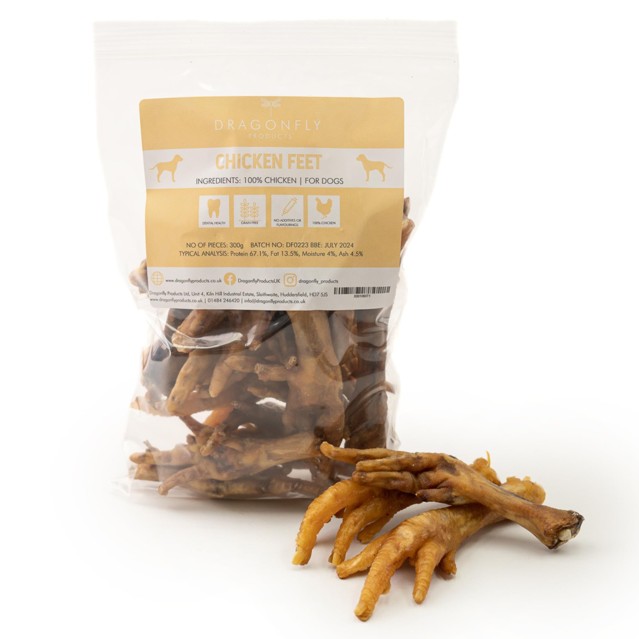 Our Chicken Feet have the claws removed and are gently oven-dried to make these natural dog chews.