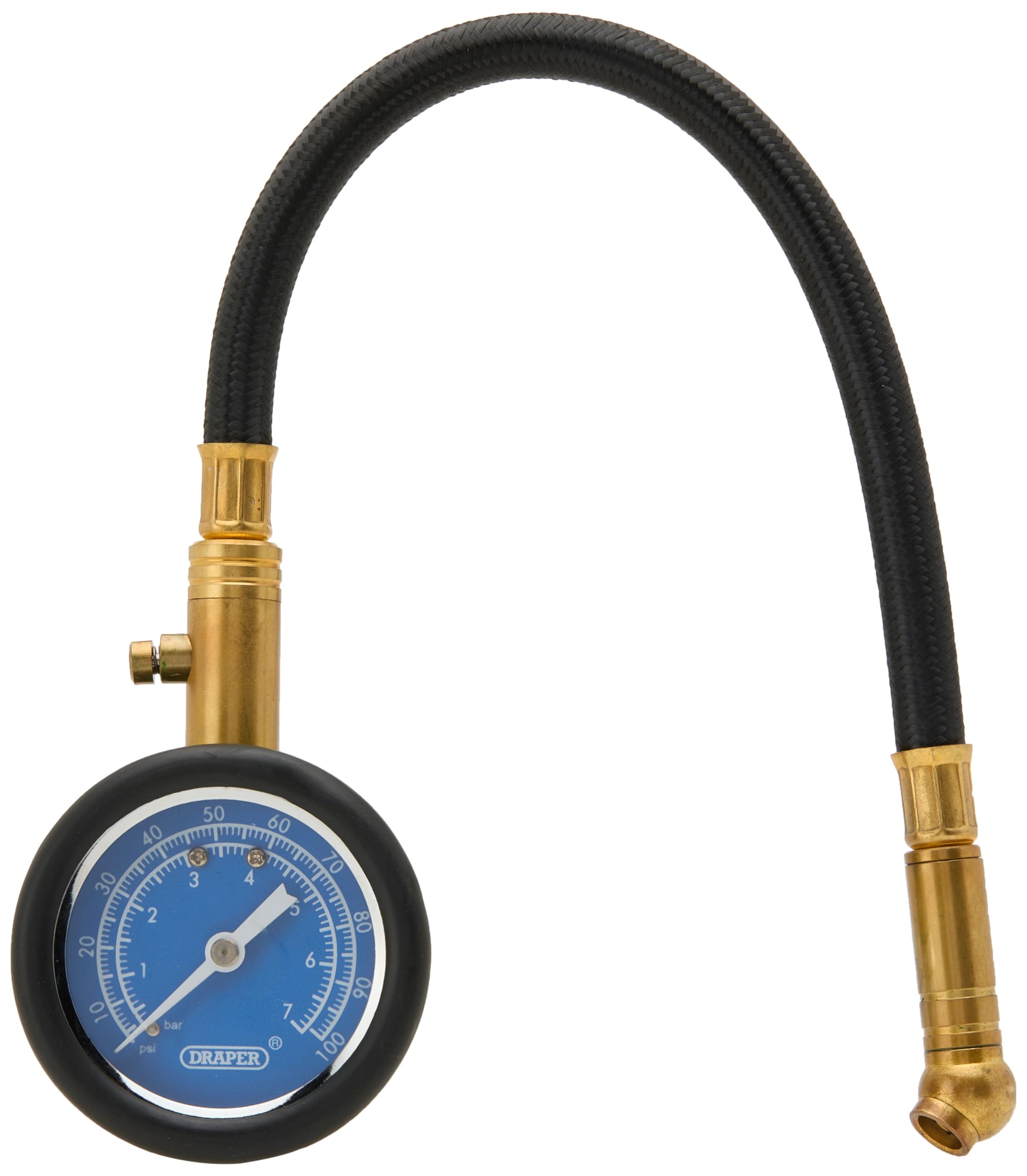 Product DescriptionDraper 69924 Tyre Pressure Gauge with Flexible Hose.Box ContainsDraper Tyre Pressure Gauge with Flexible Hose