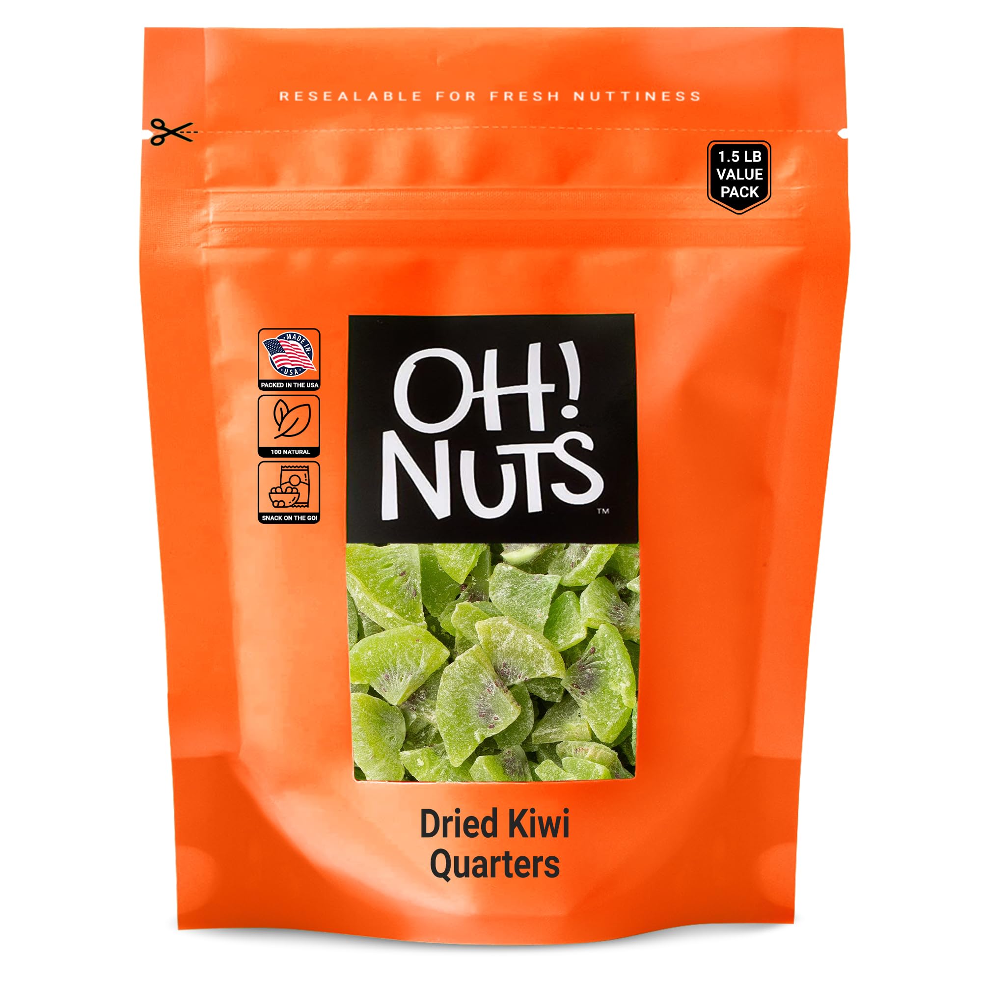 Oh! Nuts Diced Dried Kiwi Quarters are handpicked fresh kiwi, dried and diced in quarters and are packaged in premium re-sealable zipper! These succulent, chunky and chewy kiwi squares are sweet, juicy and fruity in flavor and tender in texture; ideal for snacking or baking. Add this to your cereals, smoothies, salads or eat as is. You don't have to worry as they are vegan, kosher and pareve friendly, just devour on our succulent Diced Dried Kiwi Quarters and elevate your taste palate.