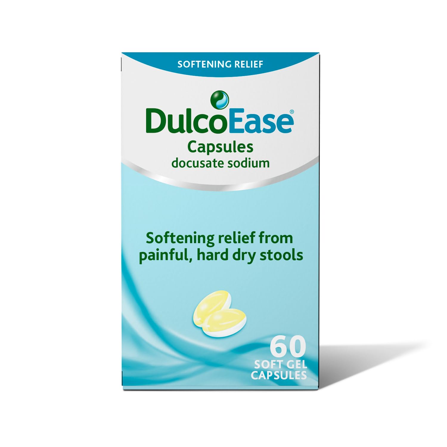 DescriptionProduct DescriptionDulcoEase is a stool softener with a dual mode of action effect, softening and stimulating effects, to help keep things moving and relieve constipation.Material reference: MAT-GB-2201043 (v1.0) Feb 2023”.IndicationsDulcoEase helps to soften hard stools for a comfortable way to go to the loo. It comes in the form of a small convenient soft gel capsule that can be swallowed with water. From the makers of DulcoLax, DulcoEase provides effective relief from the pain and embarrassment of "painful poo syndrome". DulcoEase stool softener provides relief when bowel movement is painful or difficult, if you are constipated or suffer from piles or anal fissure. DulcoEase softens hard, dry stools by increasing the amount of water within the stools.IngredientsThe active substance is docusate sodium. Each capsule contains 100 mg of docusate sodium.The other ingredients are: macrogol 400, propylene glycol, gelatin, glycerol, sorbitol (E420), titanium dioxide (E171), water, sunset yellow (E110), and quinoline yellow (E104)DirectionsDirections for use: Adults: 1 capsule orally, up to 5 times per day; initially, try 3 capsules per day, then adjust according to need. Reduce the dose when you feel more comfortable, usually within 1-2 days. Swallow whole with water. Children under 12 years: Not recommended. If you are pregnant or breast feeding, think you may be pregnant or are planning to have a baby, ask your pharmacist or doctor for advice before taking this medicine.Safety WarningDo not take DulcoEase if: you have stomach pains, you feel sick or have been sick in the last 24 hours, you have a blockage in your intestine (intestinal obstruction),you are allergic to docusate sodium or any of the other ingredients of this medicine (listed below), you are intolerant to any sugars such as fructose or sorbitol.DulcoEase contains a small amount of sorbitol, you are taking a mineral oil laxative such as liquid paraffin.Talk to your pharmacist or doctor if you end up taking DulcoEase every day or you get stomach pain which does not go away.