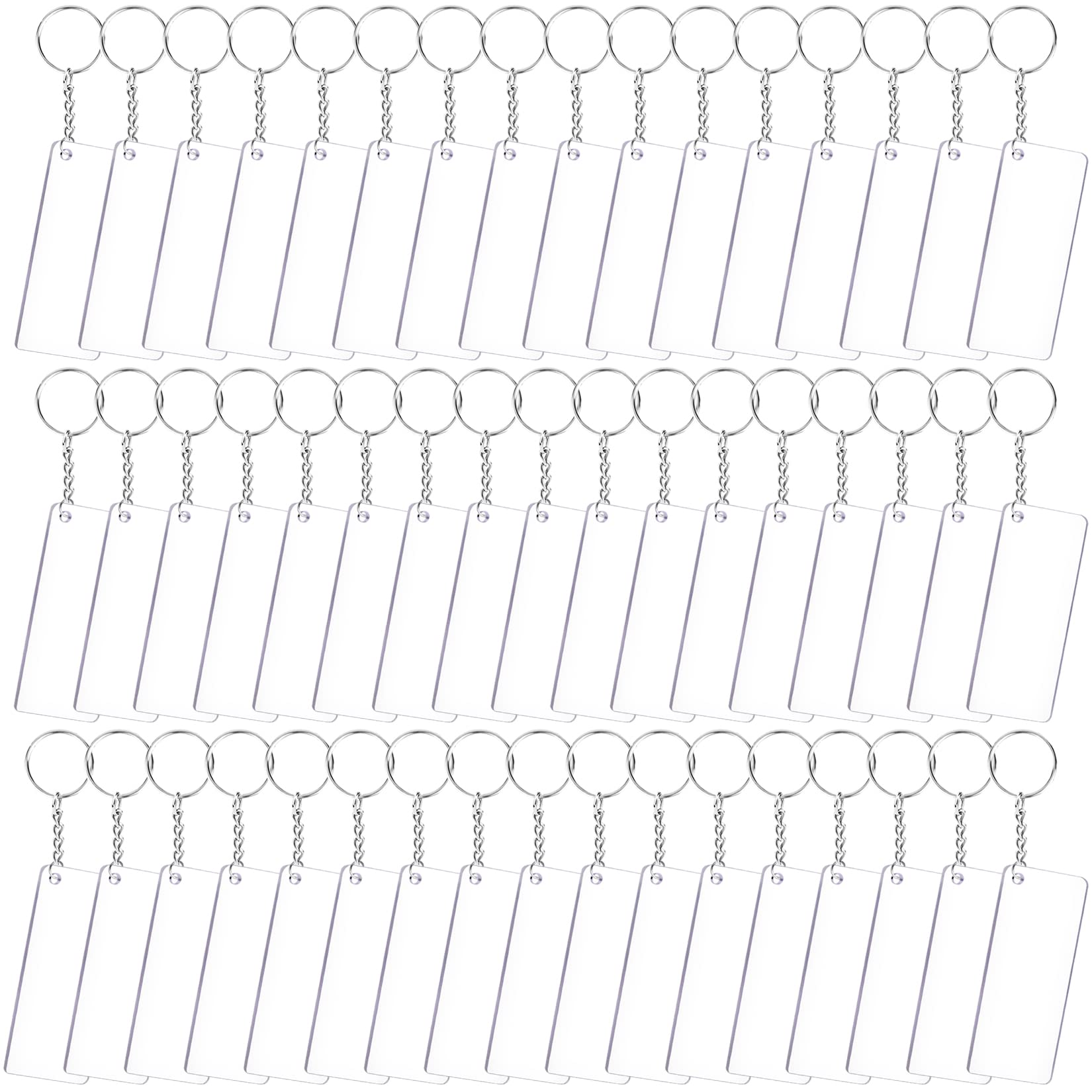 Duufin 150 Pieces Rectangle Acrylic Keychain Blanks Set Including 50 Pieces Clear Rectangle Acrylic Blanks (3 x 7cm) 50 Pieces Key Rings with Chain and 50 Pieces Jump Rings for DIY Projects and Craft