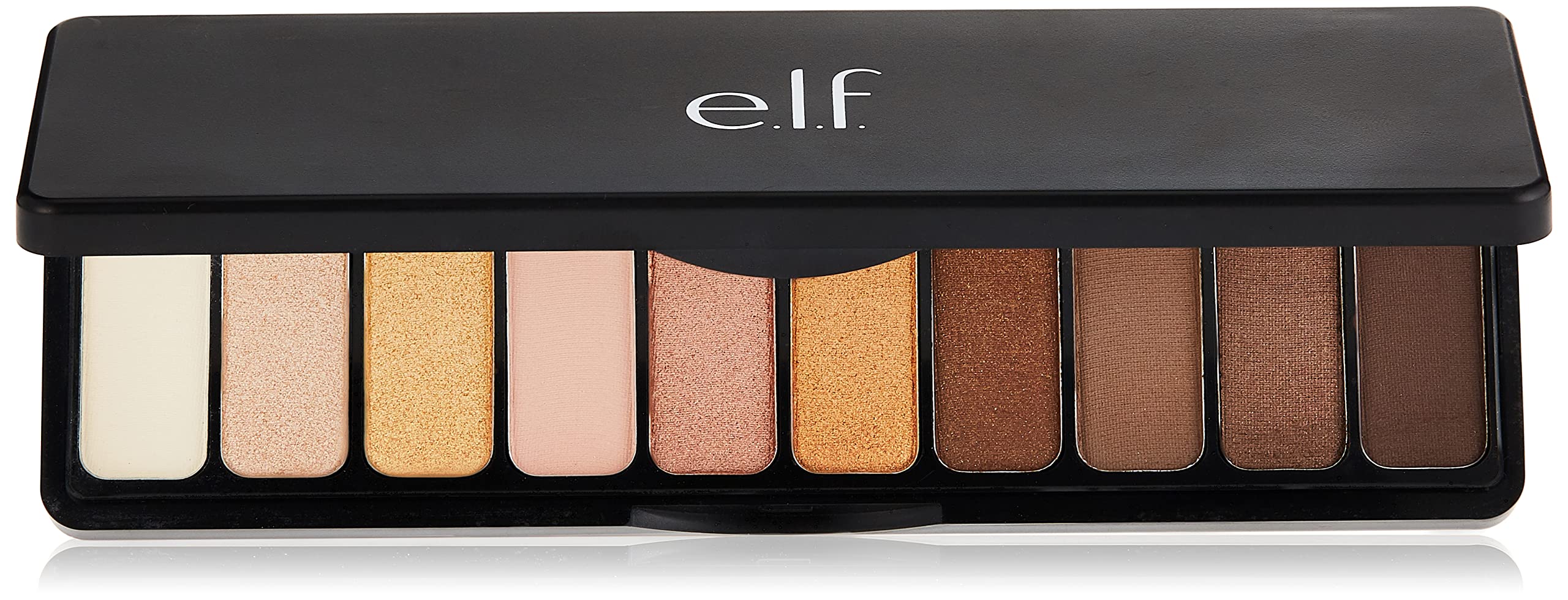 Create the perfect natural smokey eye with the Need It Nude Eyeshadow Palette. This palette features ten warm shimmer and matte eyeshadow shades that are perfect for creating gorgeous color-rich looks for every occasion. The nude and glitter-pink shades are ideal for everyday glam, while the gold and brown shades sculpt and define eyes for a more intense look. e.l.f. Cosmetics offers a complete line of vegan and cruelty-free makeup and professional tools - all at an extraordinary value price, so there is sure to be something for everyone. See bullets and images for more information.