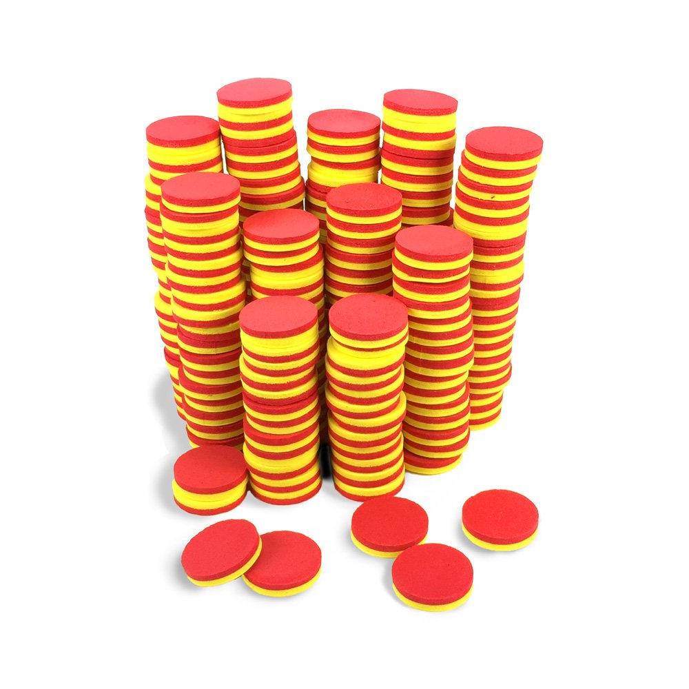 Bright red and yellow 1" counters contain a magnet and are made of durable foam that is quiet when dropped. Great for introducing new concepts such as beginning addition subtraction multiplication and division as well as grouping and sorting.