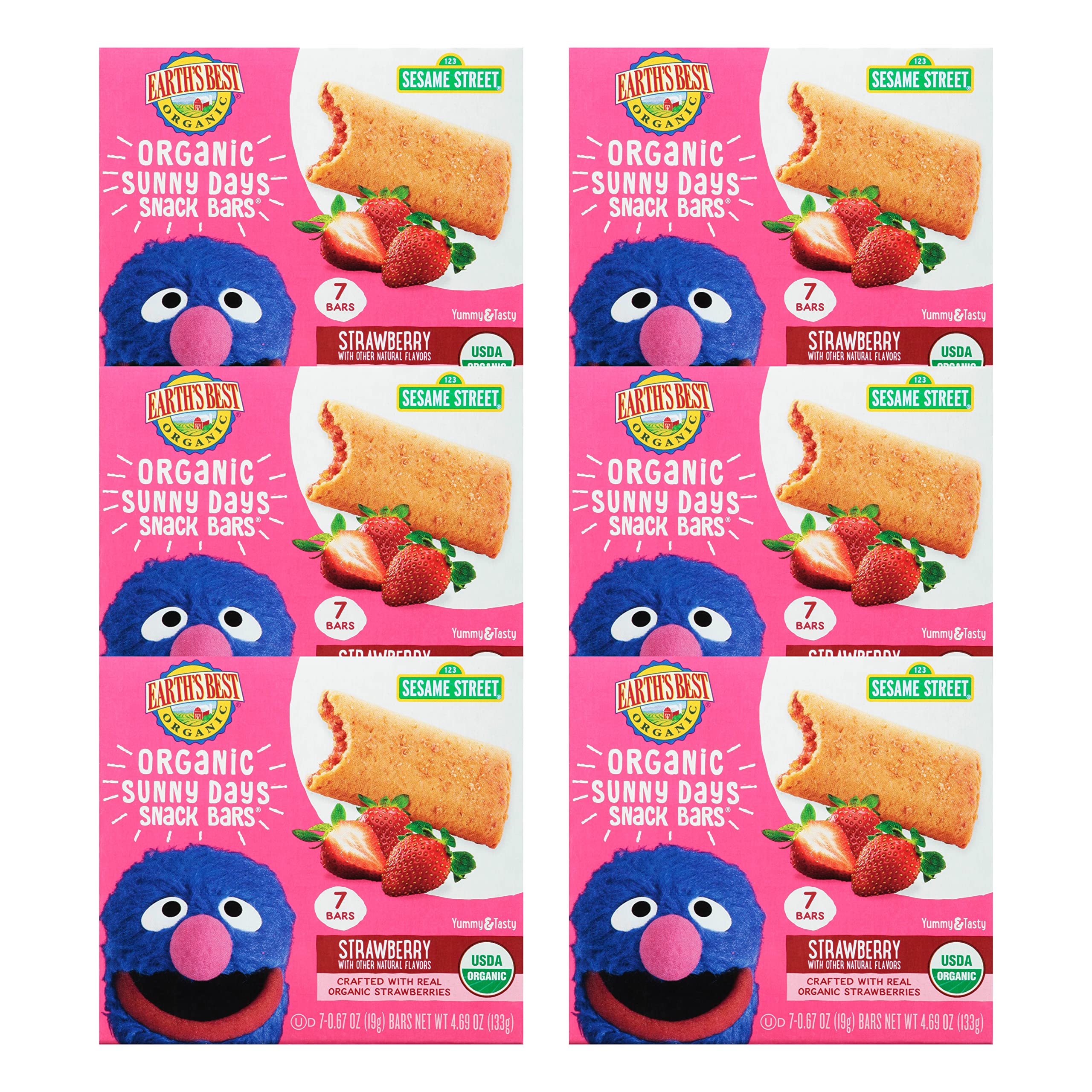 Earth's Best Organic is bringing play time to snack time with our range of tasty toddler crackers, cookies, smoothies, and snack bars inspired by your little one's favorite Sesame Street characters. Our snacks combine good-for-you ingredients with exciting shapes and flavors for a tasty treat that's both parent and toddler-approved. Your tot will have fun practicing their ABCs with our Organic Letter of the Day Cookies, enjoying classic flavor combinations with our PB&J Bites, or staying mess-free and full on-the-go with these individually wrapped Sunny Days Snack Bars. Made with real organic strawberries, our Organic Sunny Days Snack Bars do not contain artificial flavors or artificial sweeteners − so you know your toddler is getting the wholesome support they deserve with every bite. Wholesome flavor, wholesome fun− that's what makes us the Earth's Best brand.