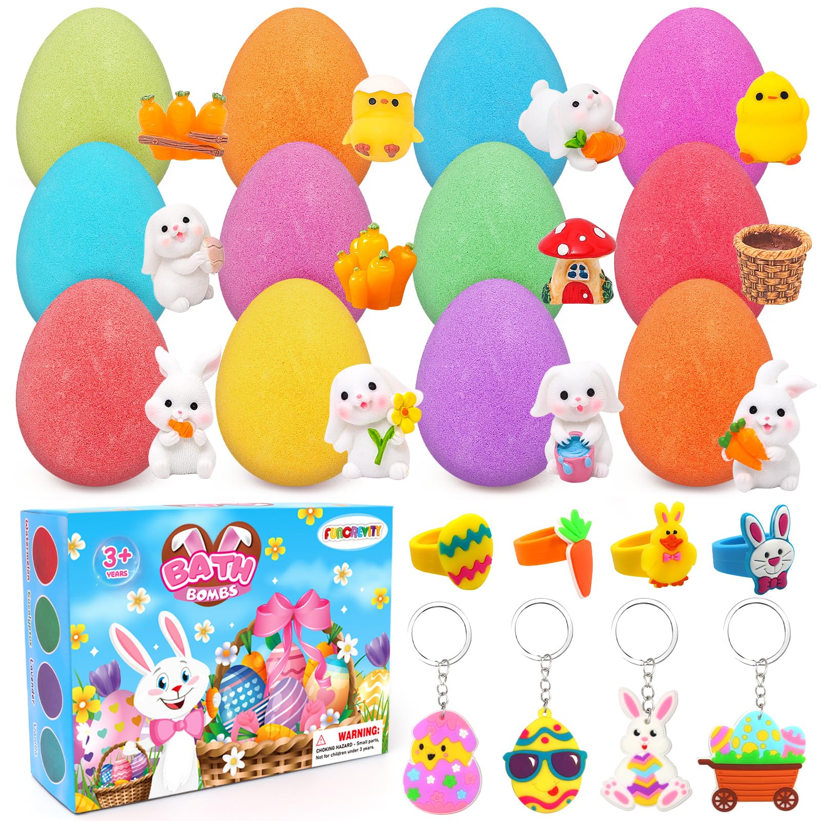 Easter Bath Bombs with Toys Inside for Kids Girls Boys Easter Basket Stuffers Handmade Fizzy Easter Eggs Balls Organic Bubble Bath Bombs for Easter Party Favor Easter Gift Set