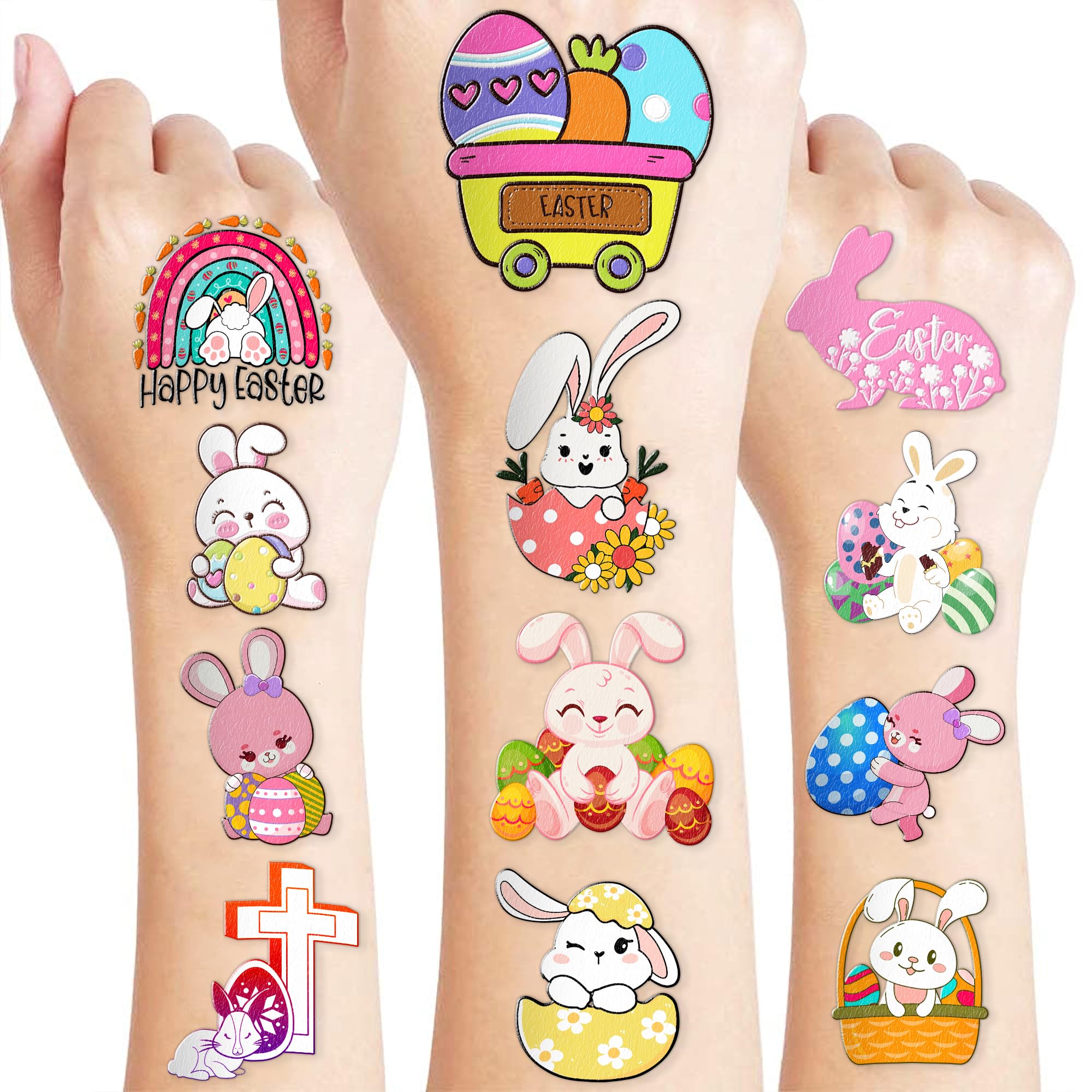 Easter Temporary Tattoos - Bunny 80PCS Easter Rabbit Basket, Religious Themed Stickers for Kids Birthday Party Supplies Decorations Favors and Prizes - Cute Gifts for Boys and Girls Ideal School