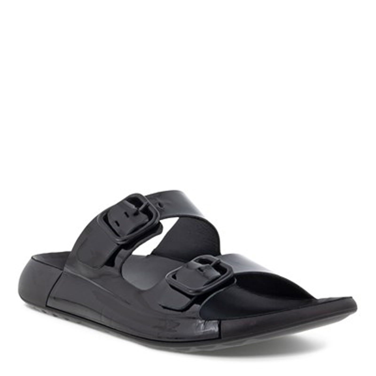 ECCO Women's COZMO TWO BAND BUCKLE, BLACK PATENT, 4-4.5