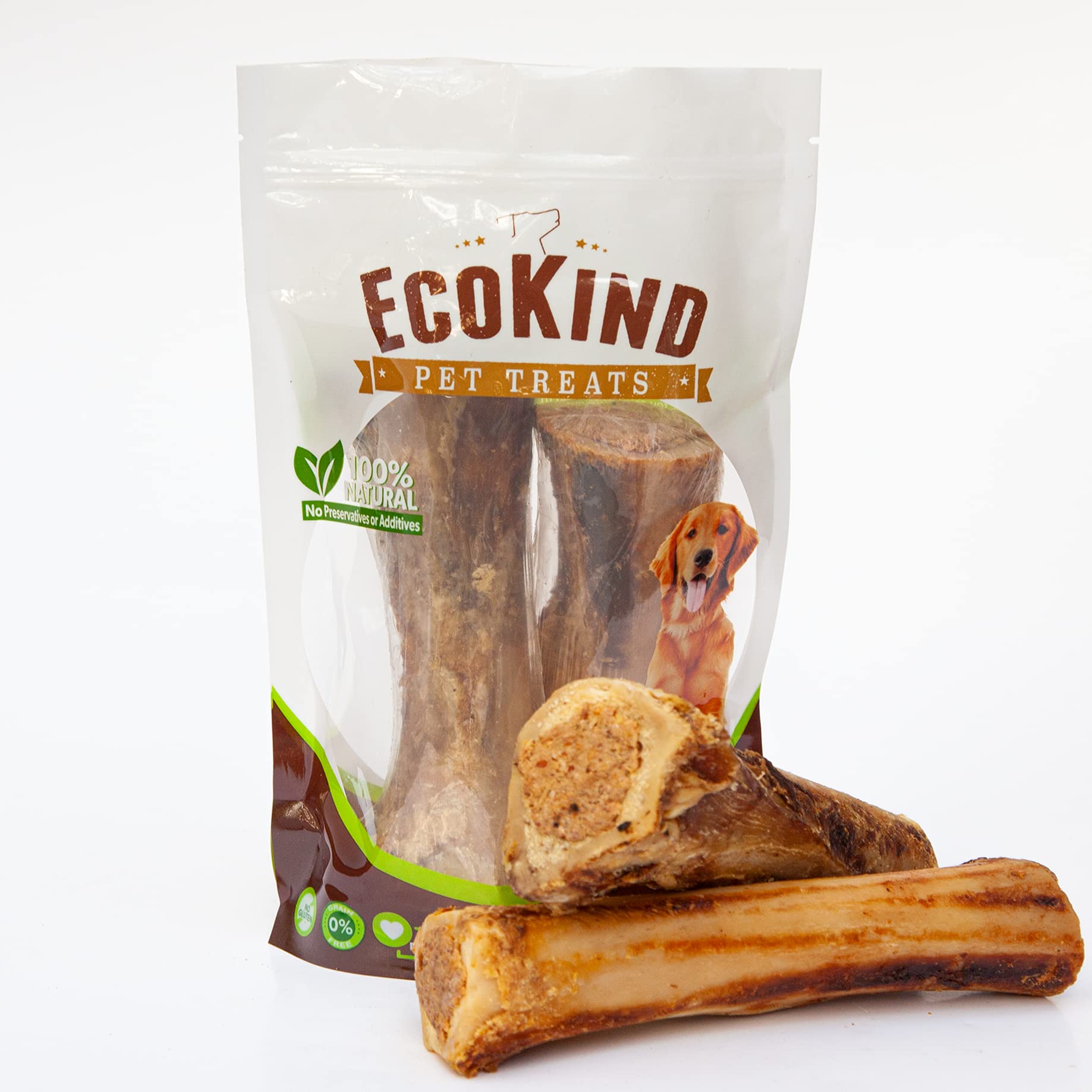 If You’re Looking For A Healthy Snack That Will Make Your Doggy Go Craze, You Should Look No Further! The Ecokind Pet Treats premium stuffed shin bone for dogs is finally here to help satisfy your dog’s desire to chew and keep your sneakers and furniture safe from your pet’s jaws! Attention Dog Owners! This Is What Your Dog Wants! Close your eyes and imagine your favorite BBQ beef burger, your favorite peperoni pizza or barbecued ribs. Now you can understand how much your furry friend will enjoy this stuffed dog bone for aggressive chewers! Here Are The Top 5 Reasons To Choose Our Meaty Dog Bone: It’s Healthy! - unlike all those low-quality dog chews or treats, our dog bone for aggressive chewers is 100% natural and contains no additives. It’s Delicious! - carefully slow-roasted to retain all the meaty flavors, our huge dog bone will make your doggy jump up and down from joy. It’s Safe! - our shin bone is sourced from grass-fed, free-range cattle, so you can rest assured that it’s fully digestible and ideal for sensitive stomachs. It’s Nutritious! - each large dog bone for aggressive chewers contains essential fatty acids, minerals and vitamins for a balanced diet. It’s Chew-tastic! - your doggo will stop chewing on your brand new shoes or coffee table legs and start enjoying this long-lasting yummy beef bone! And The Best Part? The Ecokind Pet Treats dog filled bones for canines are ideal for all breeds