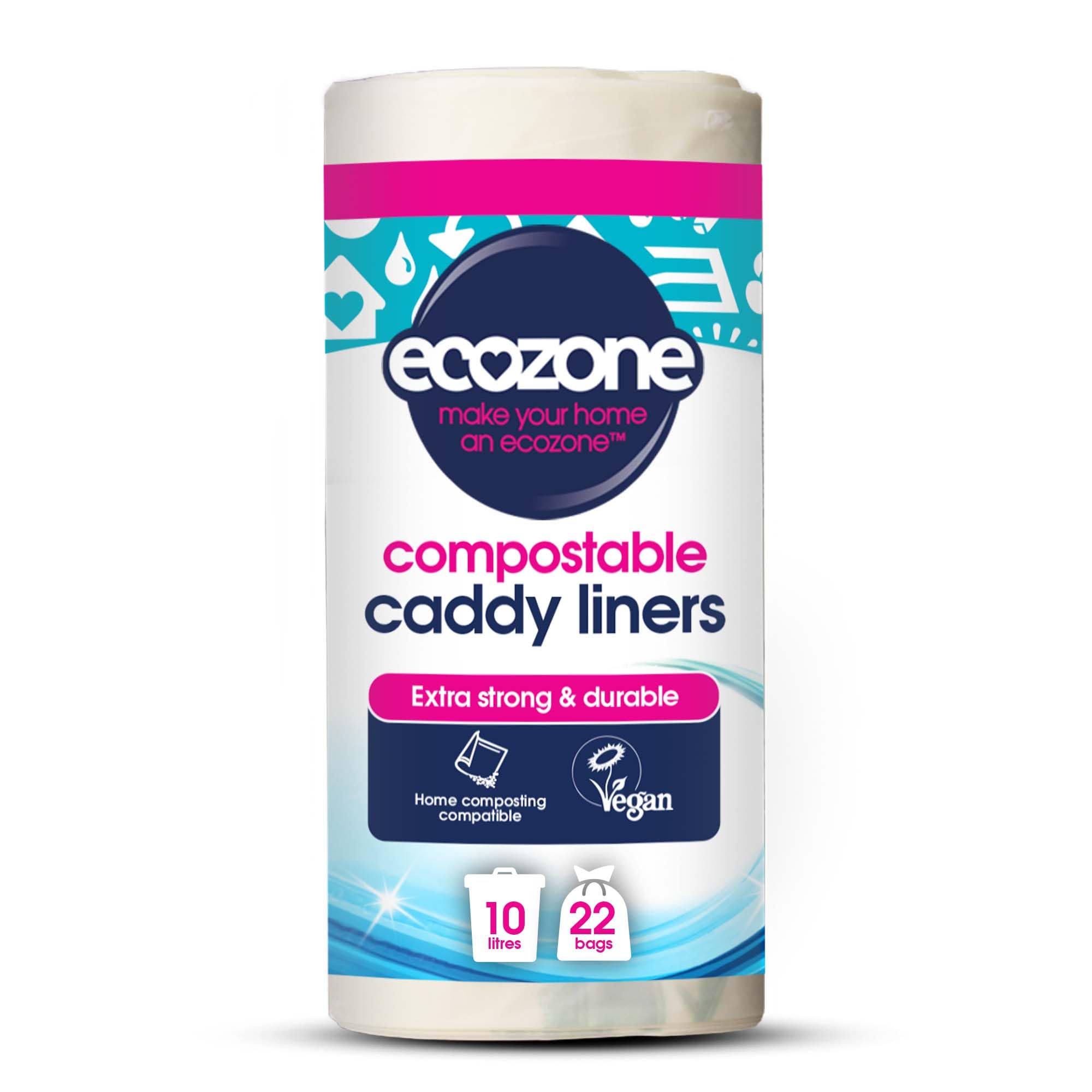 Product DescriptionEcozone’s Caddy Liners are 100% compostable & biodegradable. Designed to fit most household caddy (compost) bins, each bag holds 10L and are made entirely from plant ingredients! These sturdy liners are also tear resistant and come in rolls of 22 bags. 1) Place 1 caddy liner into your clean caddy bin. 2) Change liner every week. It is advisable to apply them each time to a clean, dry bin. Store away in a cool dry place away from moisture and sunlight.IngredientsVegetable Starch. Bag dimensions: 400 x 450mm.Box Contains1 x Compostable Caddy Liners