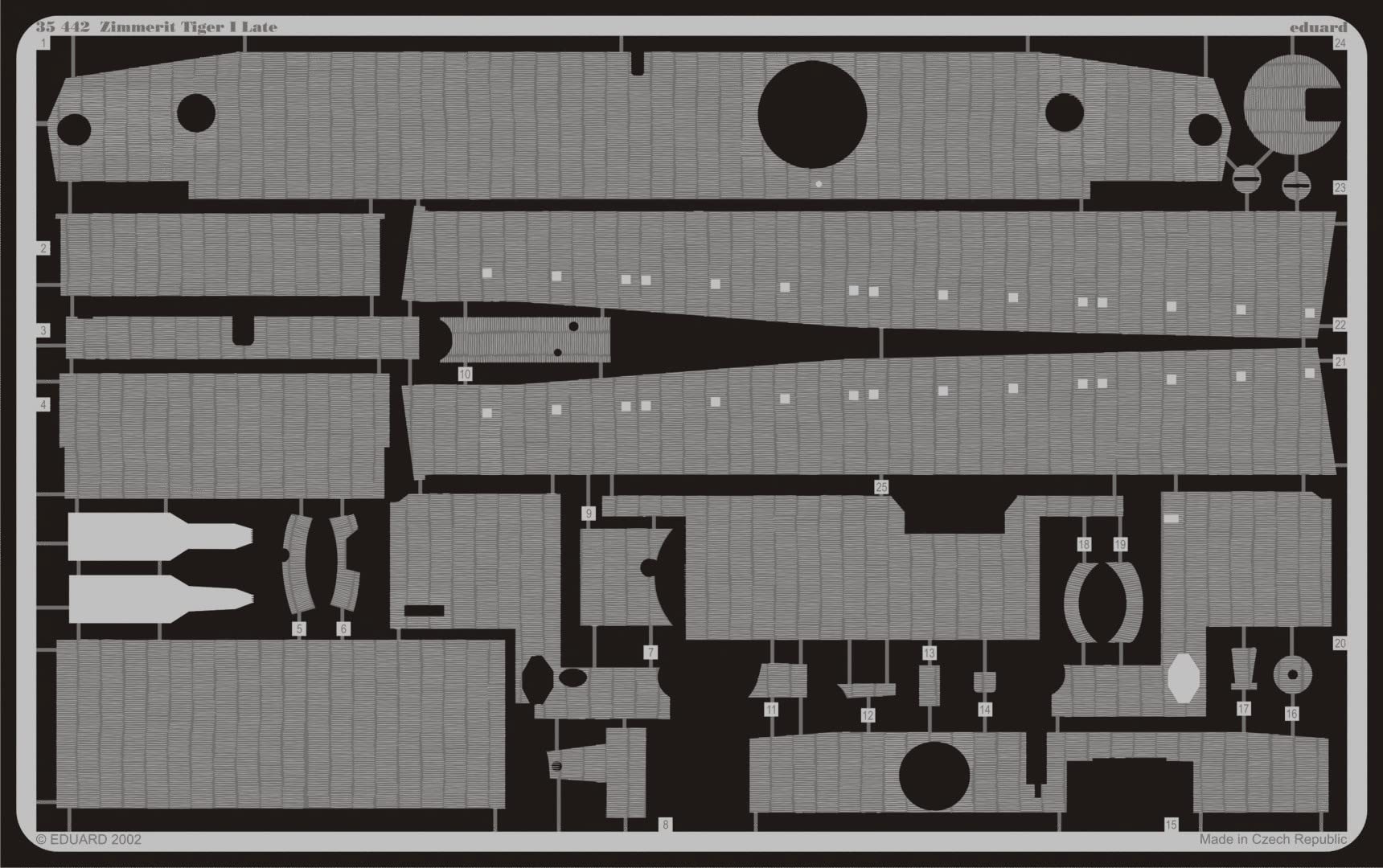 Zimmerit Tiger I Late for Tamiya kit. There are numerous finishing items and accessories in plastic model making. Details of various items can be represented much more detailed with these items. These parts give the model kit a faithful appearance as possible. The accessories range also includes numerous items for dioramas building in a wide range of scales.