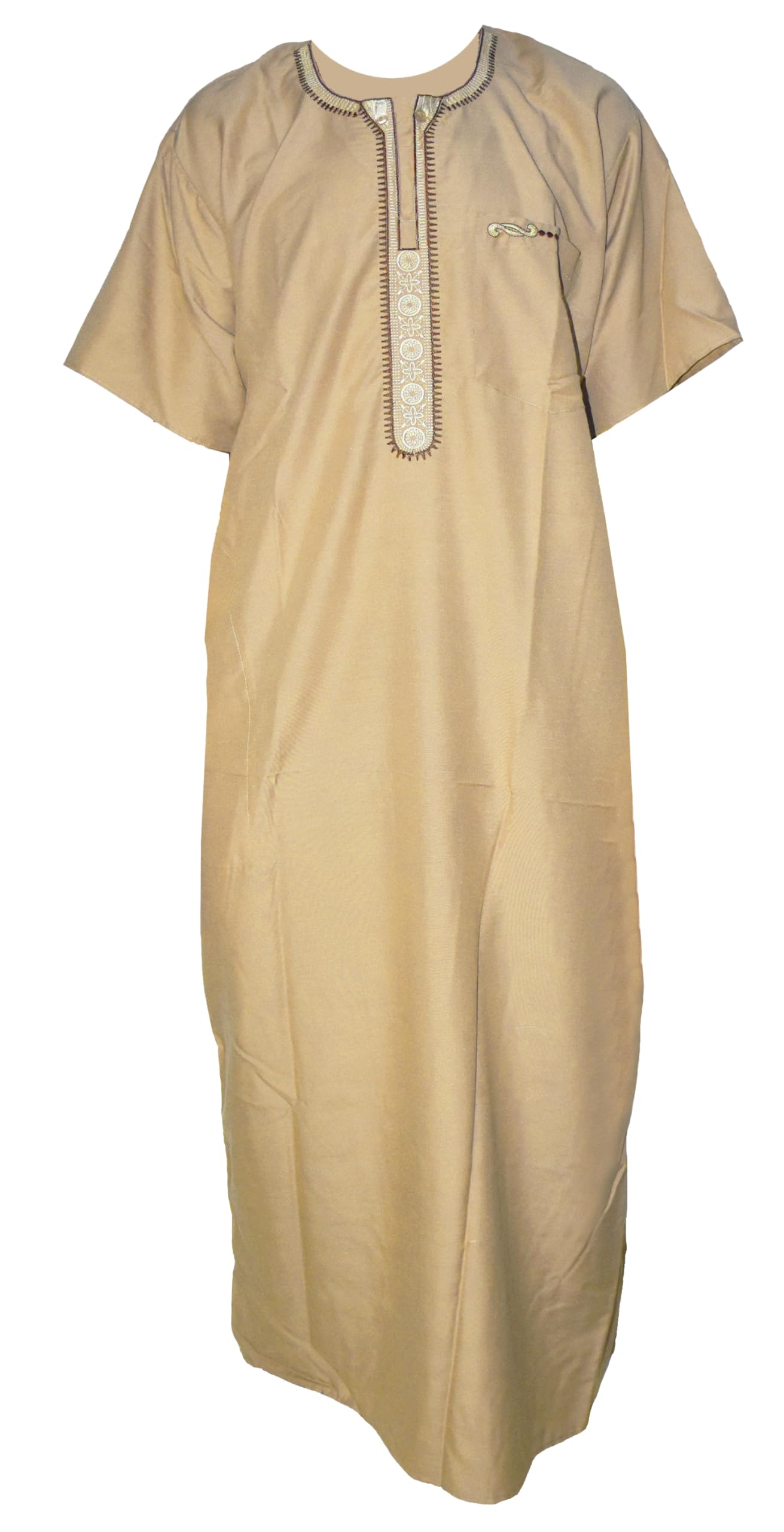Item Description : Egyptian Thoub Robe Men Caftan Jalabiya Abaya Juba Qamis Daffah Dishdasha Islamic Muslim Islam Arabian Arab Arabia Middle East Modest Jilbab Jalabia Gilbab Kaftan Coftan Half Sleeve ( Hummus ) Short Half Sleeved Oriental Men's Long Kaftan Caftan ( Galabeya / Jilbab ) Made From Light Weight Cotton And Synthetic Material Very Comfortable To Wear Features One Chest Pocket . Material : Very Good Material ( 65% Cotton 35% Polyester ) . Size (Approx.) : Size Length : 62" / 157.5 cm - Around Bust ( Round Length ) : 55" / 139.5 cm - Around Hip ( Round Length ) : 60" / 152.5 cm . Weight (Approx.) : 10.58 oz / 300 gm .