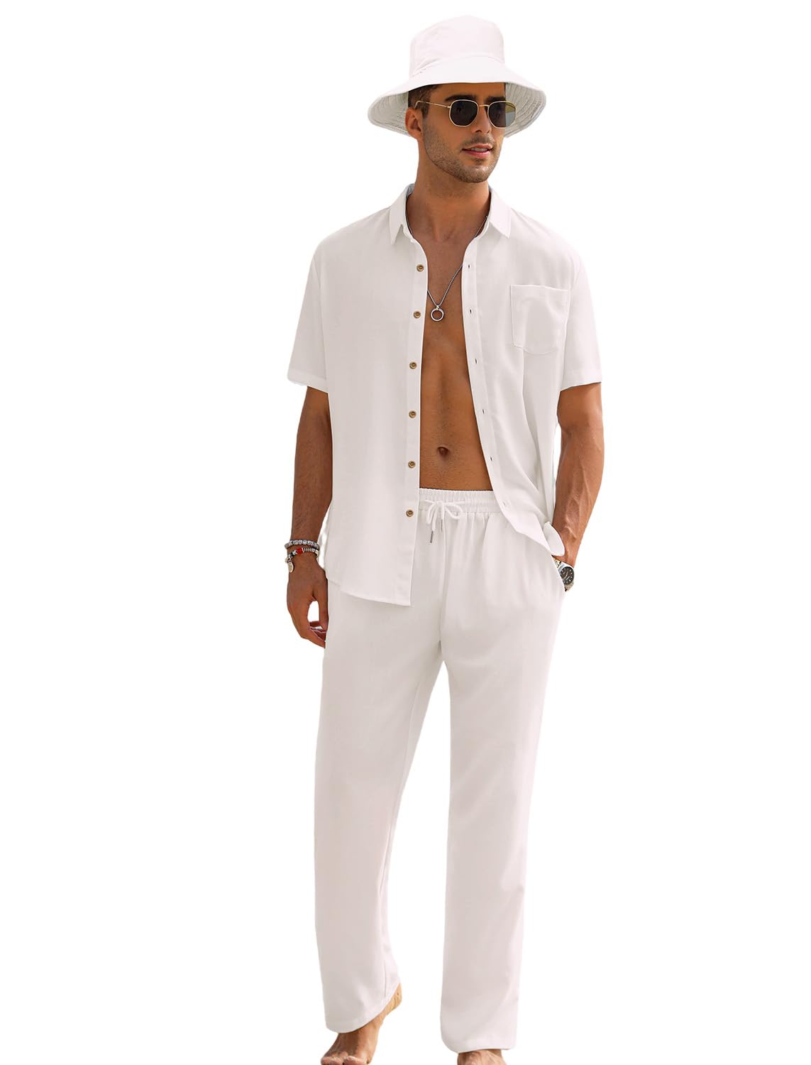 70%Rayon?30%Linen; The Casual 2 piece outfits are made of high quality linen fabric.Soft, breathable and skin-friendly, it provides a comfortable,relaxing and stylish wearing experience in spring ,summer and fall