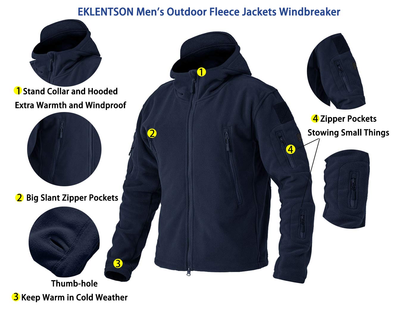 EKLENTSON Fishing Jackets for Men Tactical Fleece Outdoor Sport Windbreaker Jacket Winter Hoodie Full Zip Up Workwear Coats Navy,L