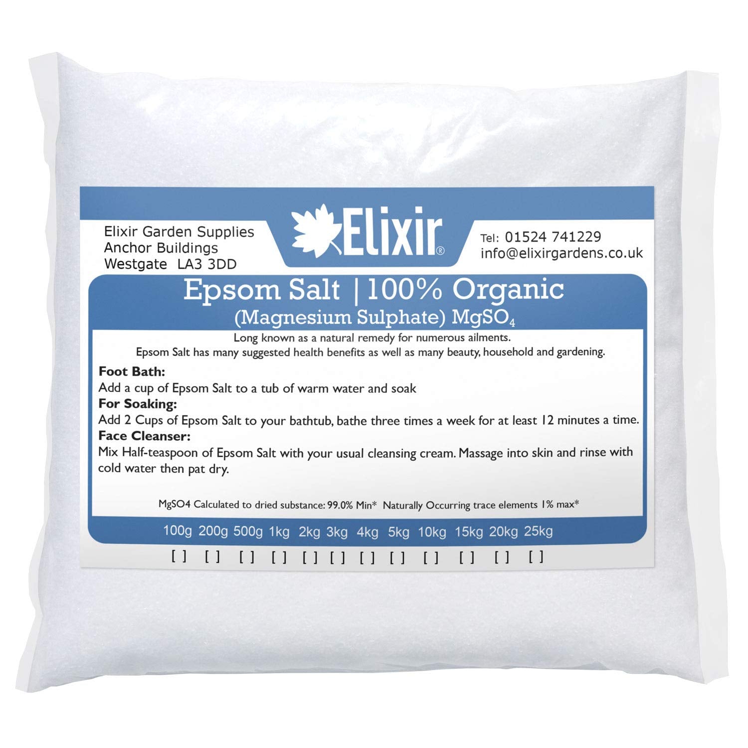 Elixir Gardens Epsom Salts (Magnesium Sulphate) Finest Organic FCC Food Grade | 10kg