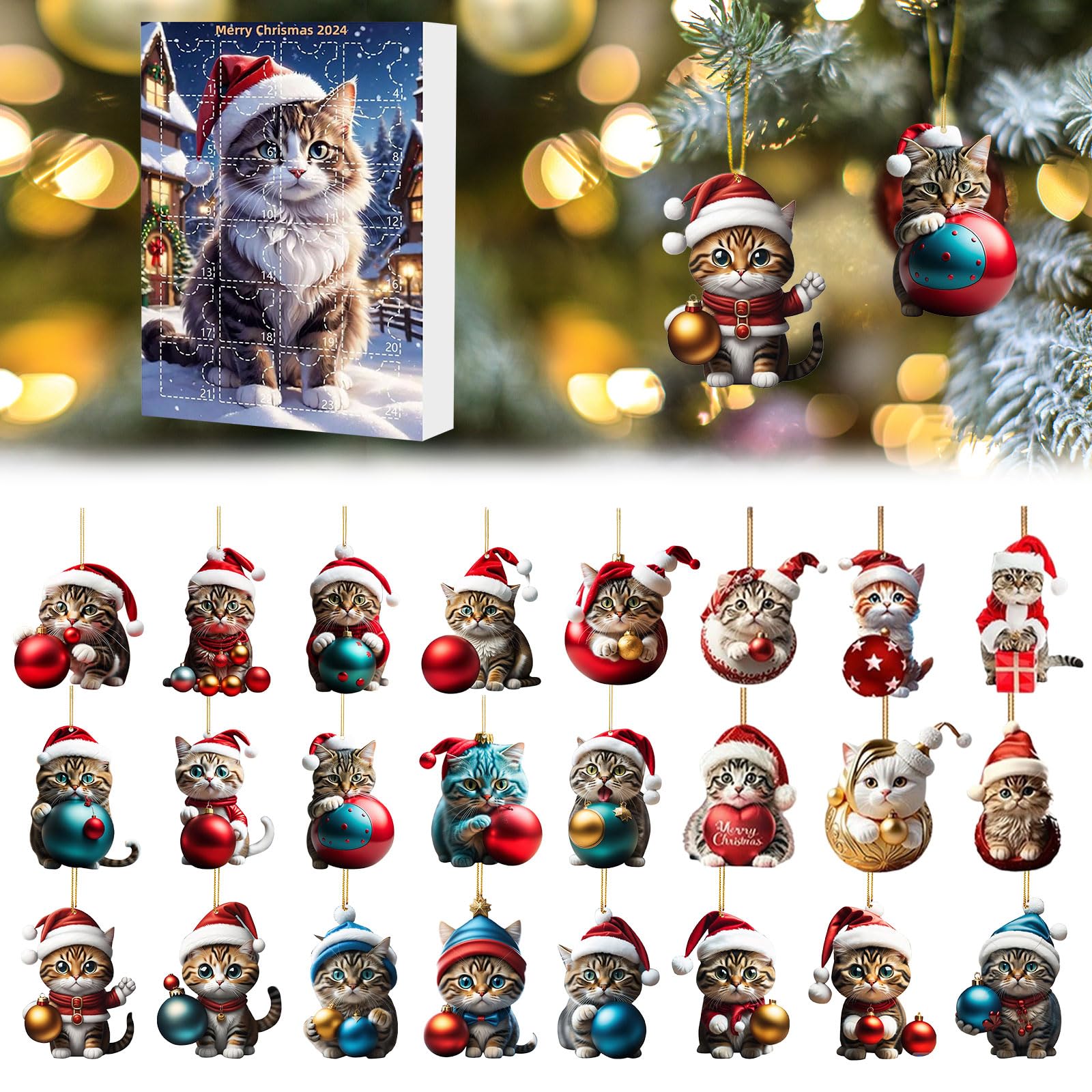 Handpicked Treasures: Unwrap 24 exquisitely designed cat themed toys and ornaments, each one carefully selected to ignite joy and add charm to your holiday décor.