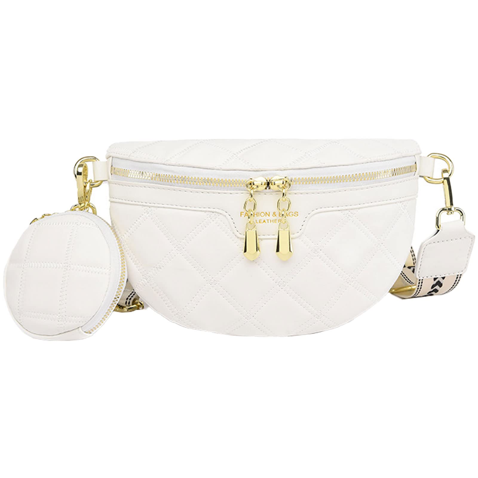 Elsaybro Bumbags for Ladies,Genuine Leather Fashion Belt Bag Sling Shoulder Bag for Women 1 Different Fashion Straps. Ladies Adjustable Multipurpose Chest Bag White