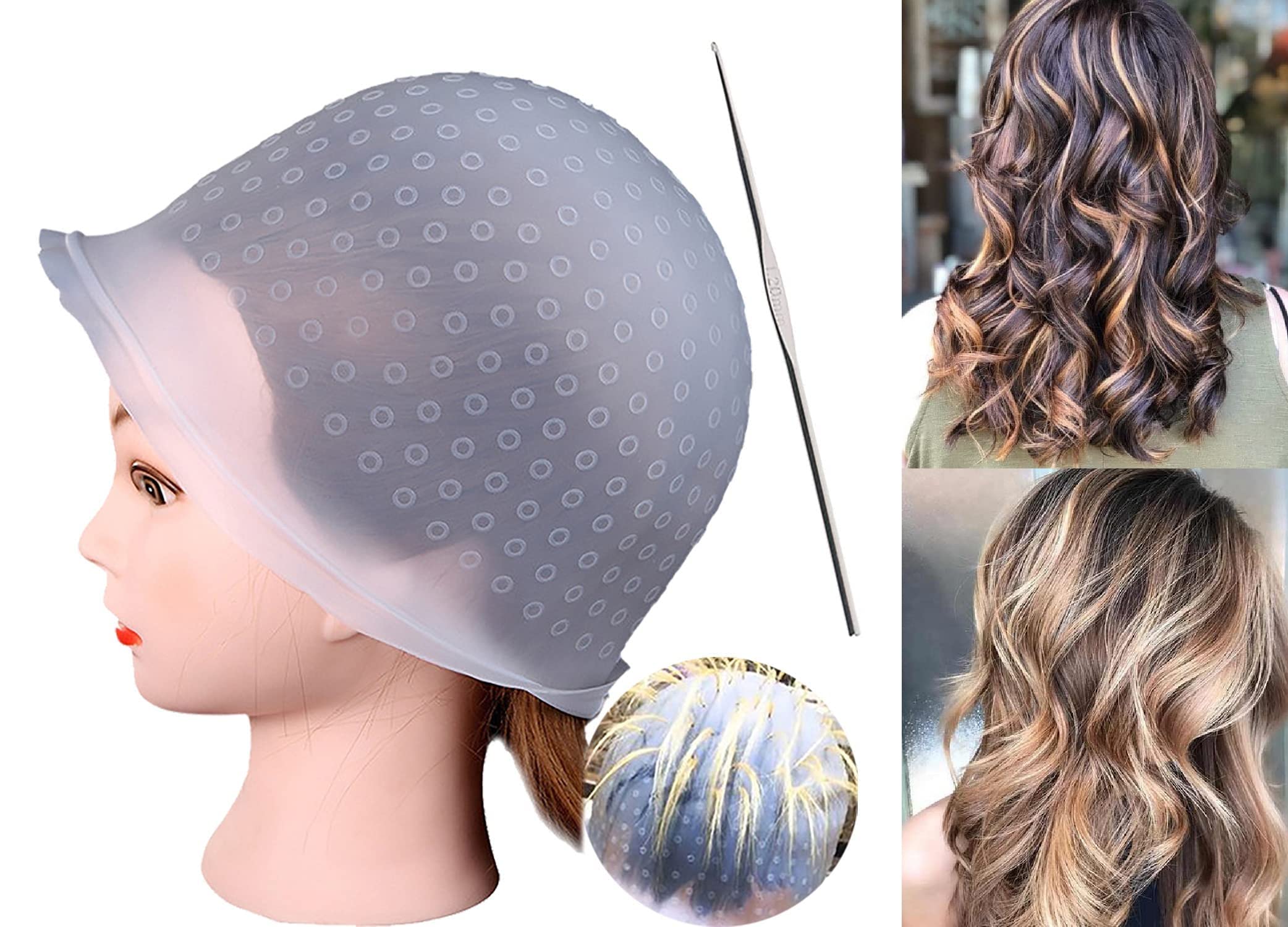 NOTE:The cape does not poke holes , everyone has different place to Hair coloring. A needle included to poke holes before using it . Get Professional style highlights at home for a fraction of the cost with this flexible, durable and completely reusable hair highlighting. Made from high grade silicone that is shaped for a comfortable fit. The highlighting cap can be used over and over again. The cap is supplied with a rounded metal hook that is used to pull your hair through the ready made perforations in the cap.