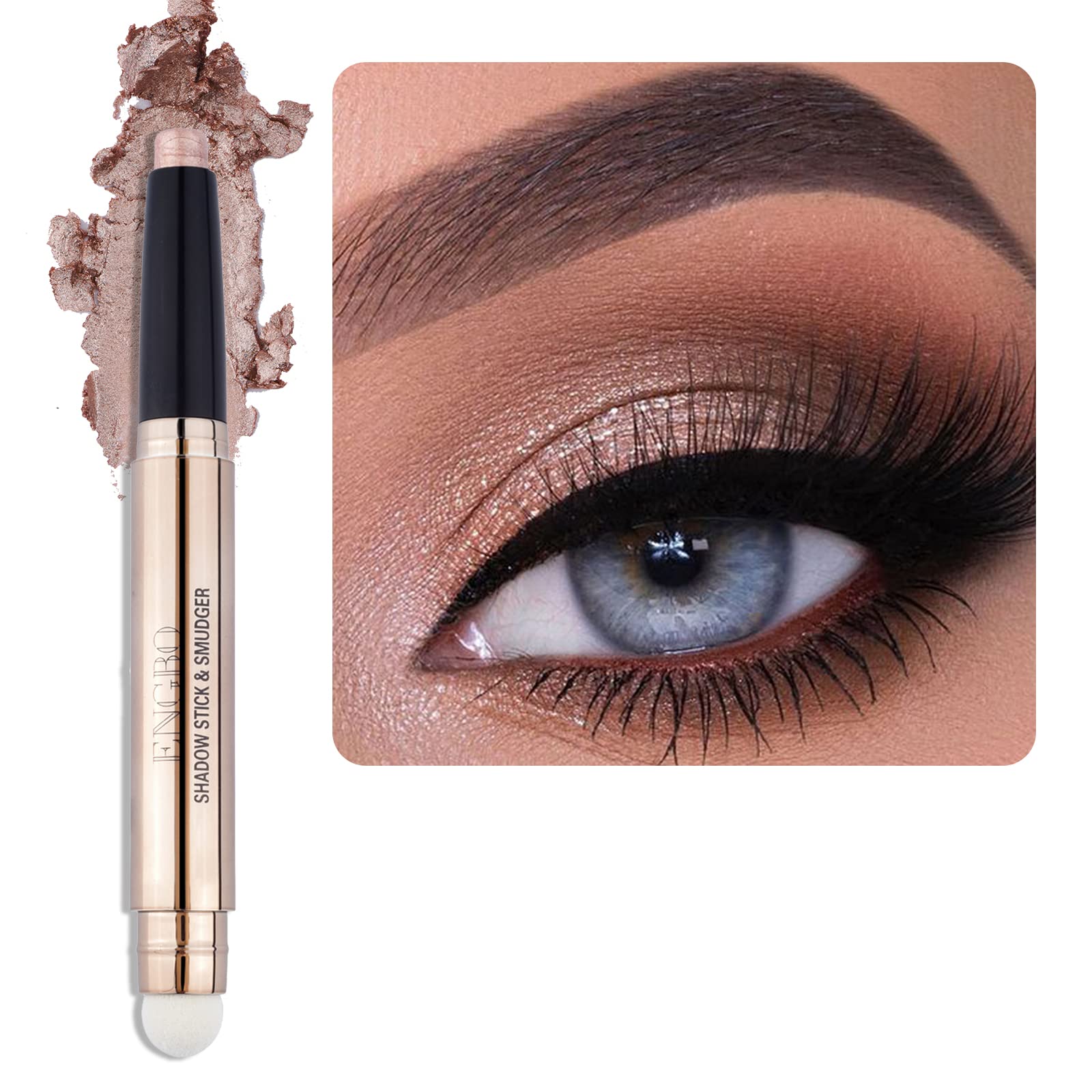 Enfuntins Shimmer Cream Eyeshadow Stick, Eye Brightener Stick Glitter Eyeshadow Crayon Pencil with Soft Smudger, Long Lasting Waterproof Highlighter Eye Shadow Makeup (03 Rose Gold Shimmer)