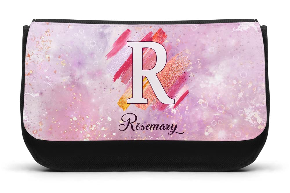 EnvyFone Personalised Pencil Case - Liquid Marble Purple Glitter Effect - Add Name and Initial - School Stationary/Makeup Bag - Girls/Ladies - Gift