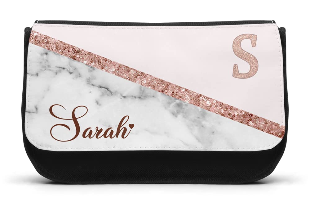 EnvyFone Personalised Pencil Case - Marble Glitter Effect - Add Name and Initial - School Stationary/Makeup/Cosmetic Bag - Girls/Ladies - Gift