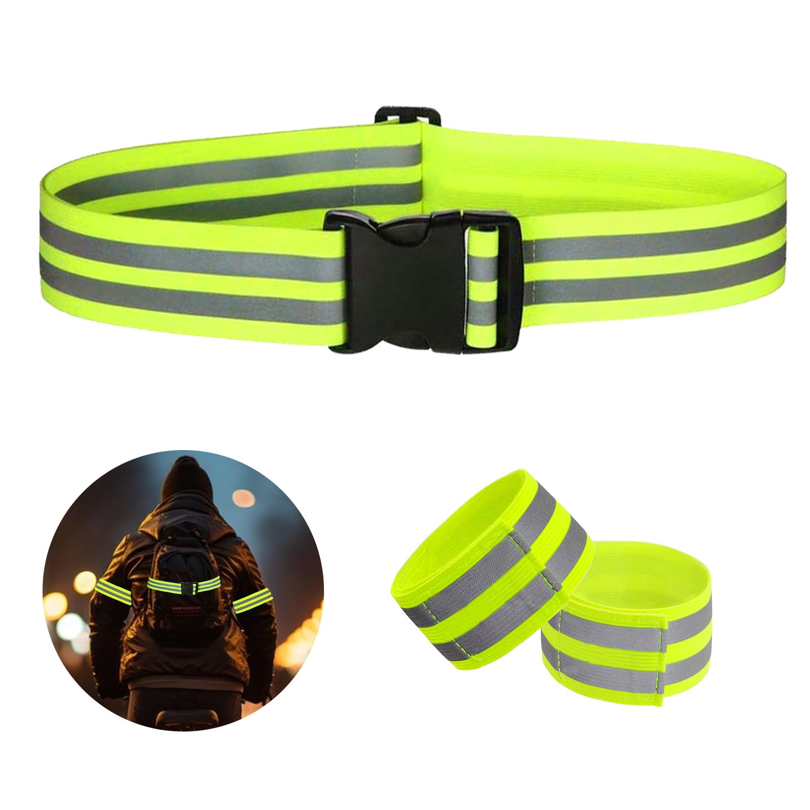 - Package includes: 1 x reflective strap, 2 x reflective running armbands.