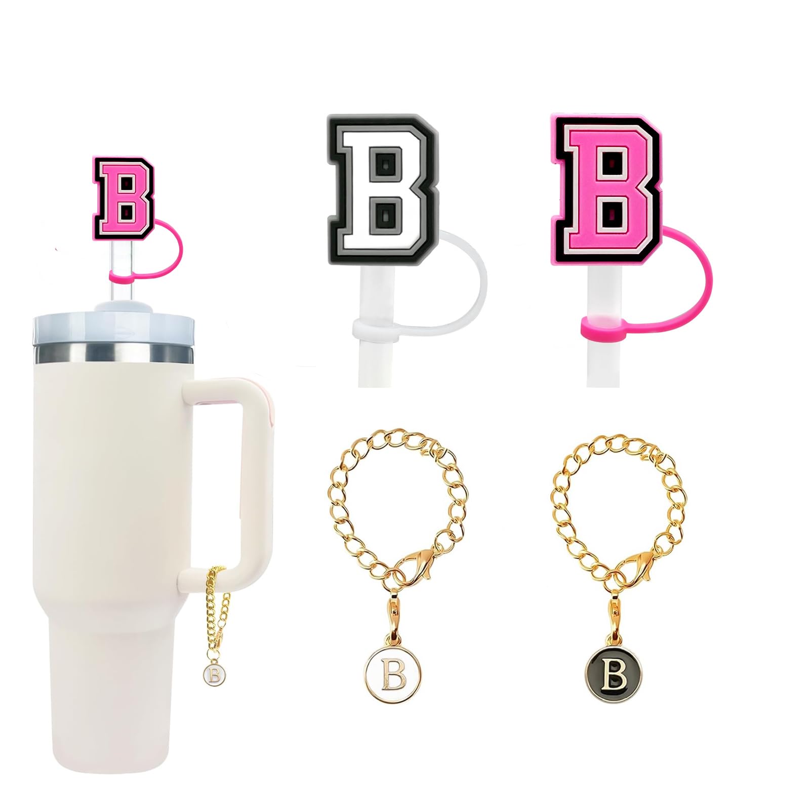 Erzgebirgische 2PCS Straw Cover Cap for Stanley Cup 30&40 Oz 10mm Straw Toppers with 2PCS Initial Personalized Letter Charms Stanley Cup Accessories for Stanley Tumbler (Letter B)
