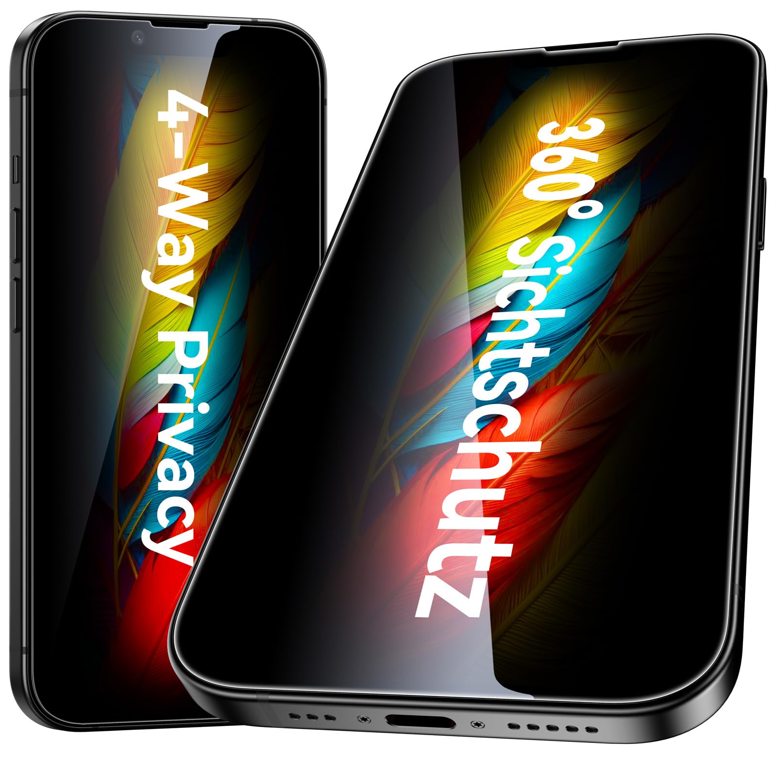 Esanik 2 Pack for iPhone 14/ iPhone 13/ iPhone 13 pro Privacy Screen Protector Tempered Glass 360 Degree 4-way Anti-spy, Installation Frame, 9H Hardness