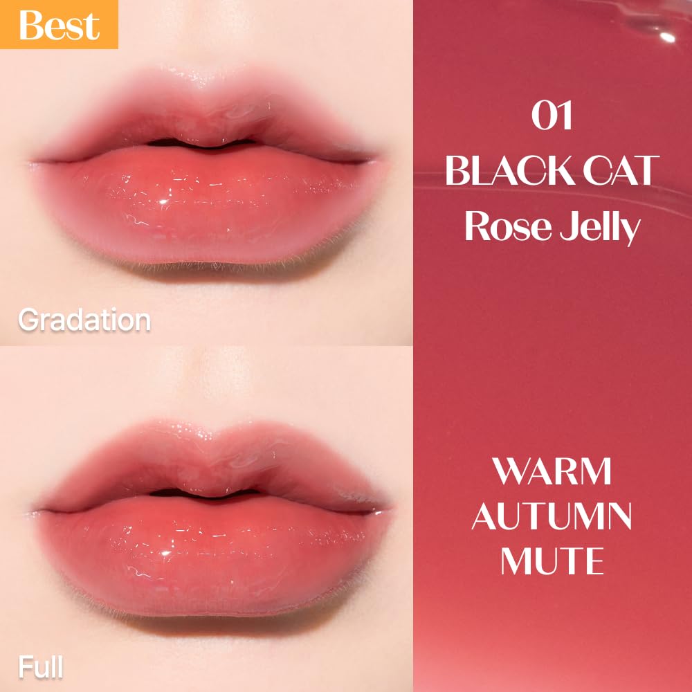ETUDE Over Glowy Tint #1 BLACK CAT Rose Jelly | Non-Sticky Vegan Lip Tint | Moisturized & Long-lasting Lip Gloss | Daily Tint for Dry Lips K-beauty