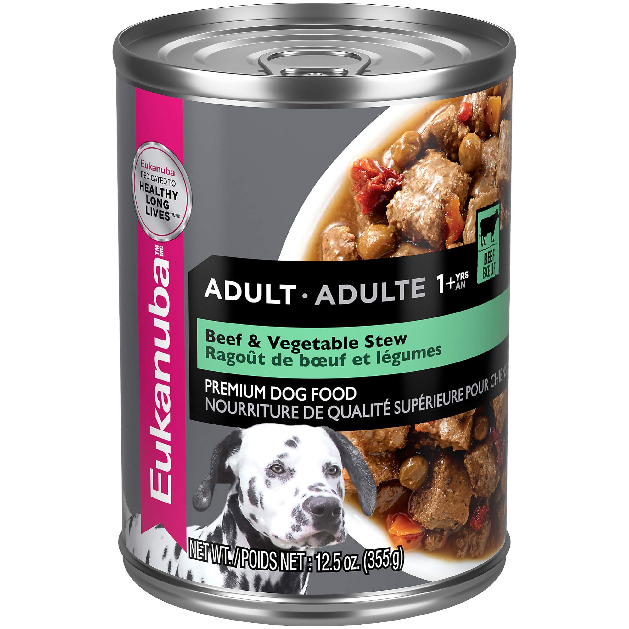 You live an active life, and so does your dog. From running and hiking to sporting and agility competitions, your partner takes it on right by your side. With Eukanuba Beef & Vegetable Stew Adult Wet Dog Food, you can help fuel their active lifestyle and all of their adventures. Made with high-quality animal proteins, this scientifically formulated wet food helps build strong muscles and is 100% complete and balanced. Feed this nutritious beef and vegetable stew alone or add it to their favorite Eukanuba kibble as a special meal topper. Eukanuba Beef & Vegetable Stew Adult Wet Dog Food helps keep them running strong to live the healthy, active life that every dog deserves.