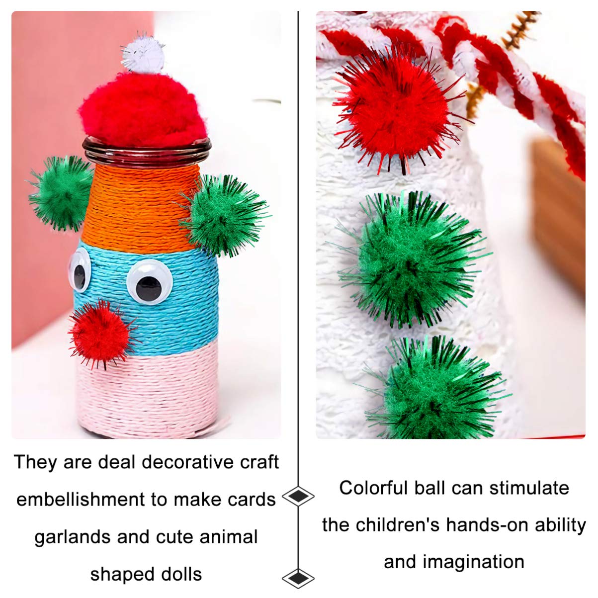 EXCEART DIY Pom Poms 300 Pcs Glitter Balls Artificial Polypropylene Metallic Line Green Pom Poms