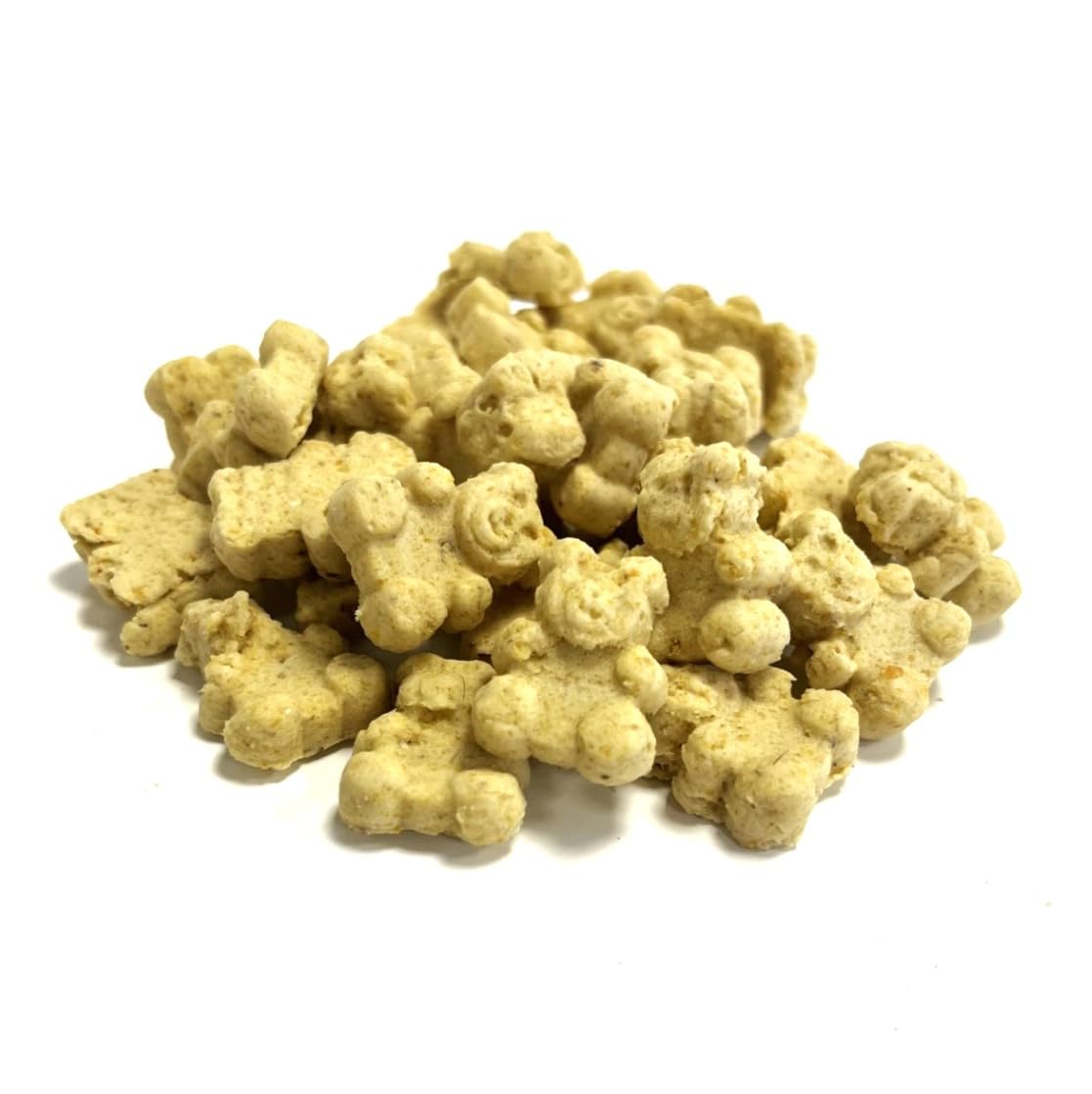 Crunchy ‘teddy bear’ shaped biscuits that your dog will love! Protein 9.6%, Fat 6.8%, Ash 4.1%, Fibre 2%, Moisture 12%