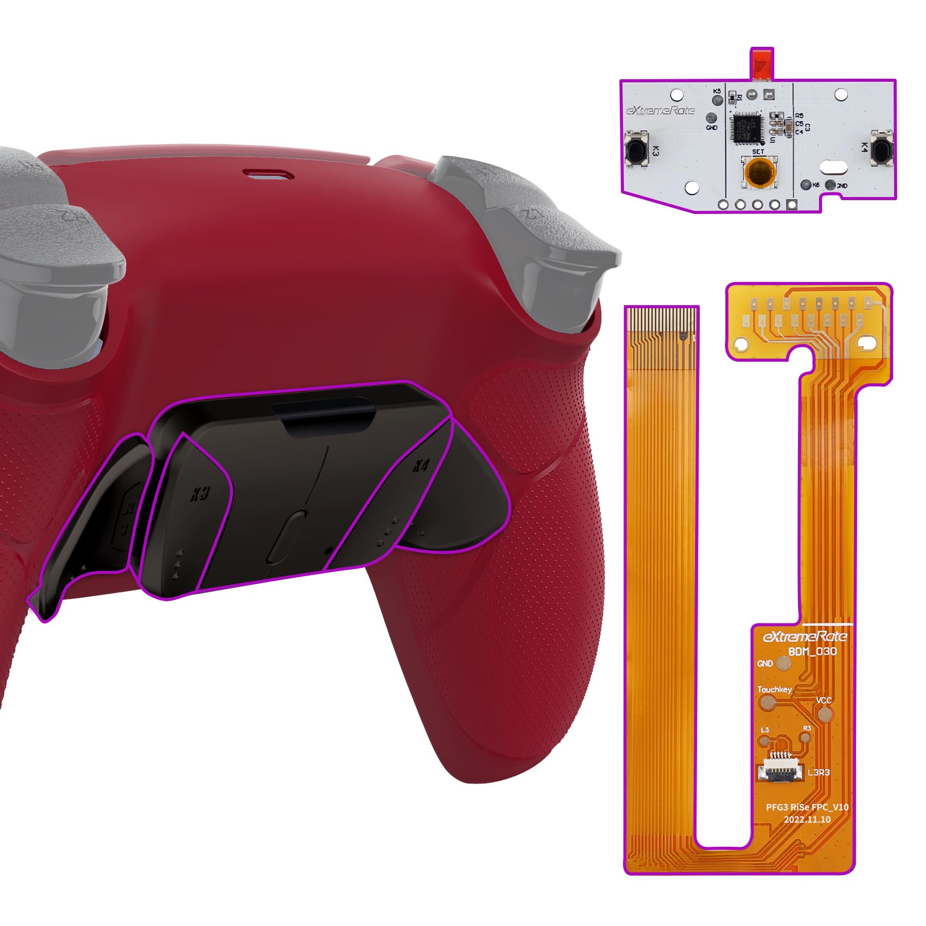 eXtremeRate Black Real Metal Buttons RMB Ver. RISE4 Remap Kit for PS5 Controller BDM-030 040 050, Volcanic Red Rubberized Grip Redesigned Back Shell, Upgrade Board & 4 Back Buttons for PS5 Controller