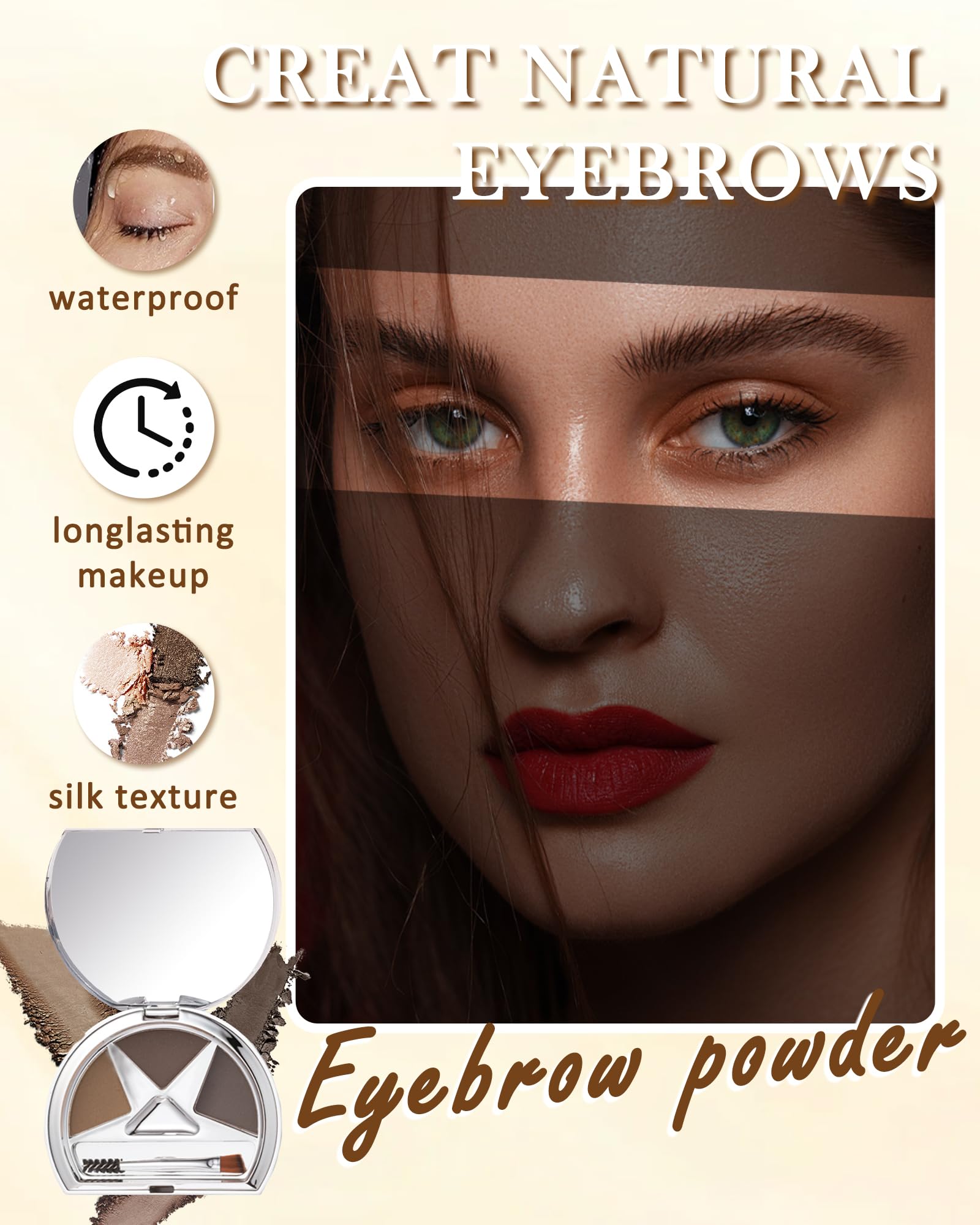 The Three-Color Eyebrow Powder Palette is Fine and Natural, with Super-Saturated Color Development, Presenting Natural Colors, This 3-In-1 Kit has Everything You Need in a Day and even More, This Travel-Friendly Kit is Perfect for Women on the go to Create the Perfect Brow-Shaped Eye Makeup