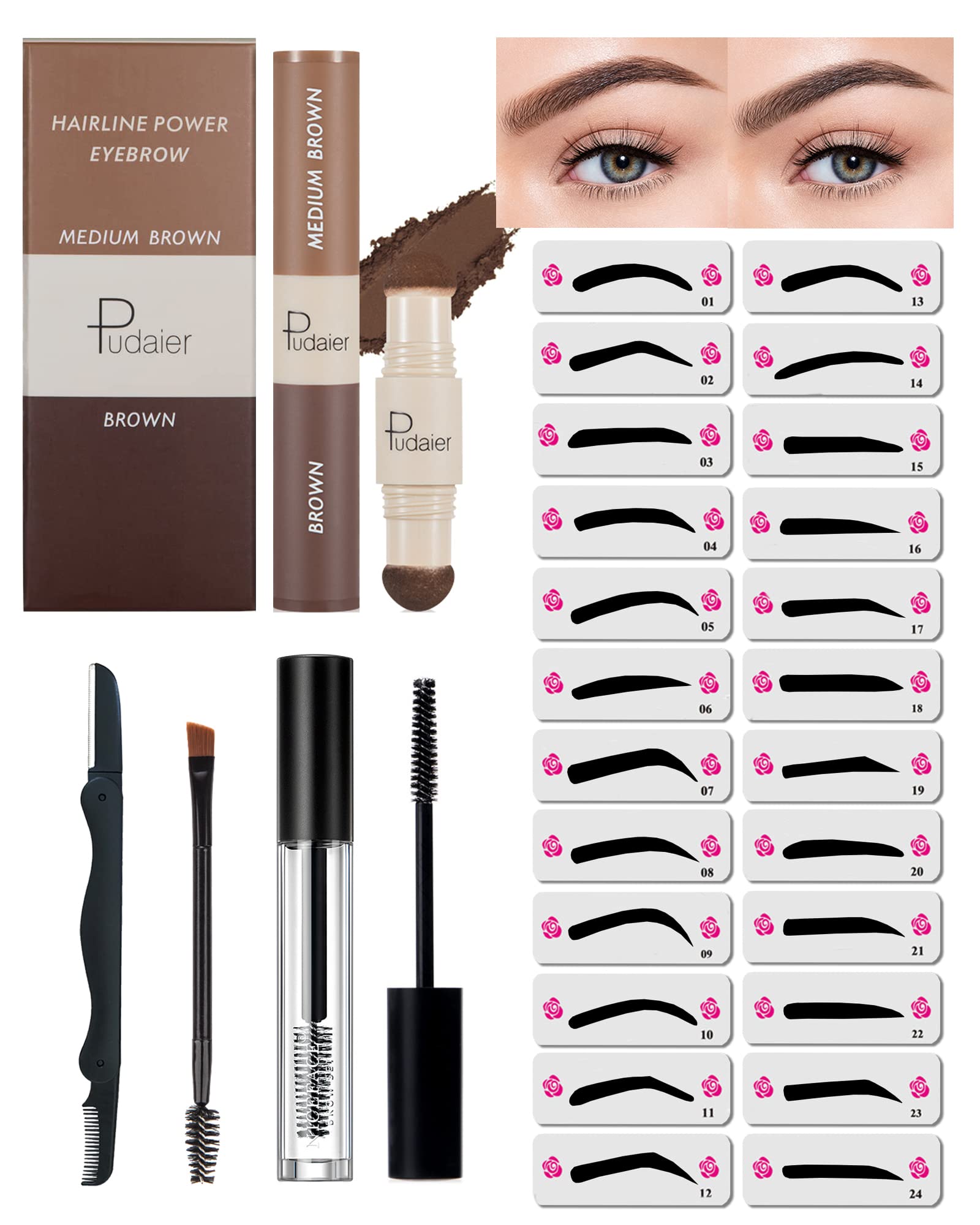 blonde taupe black medium light dark brown One step eyebrow eye brows wiz tinted pomade setting gel balm cream pencil glue soap stencil and stamp reusable tattoo waterproof smudge proof trio kit set by wadluvv black medium light dark brown women’s mother’s Day gift for older women beginners pomada para cejas