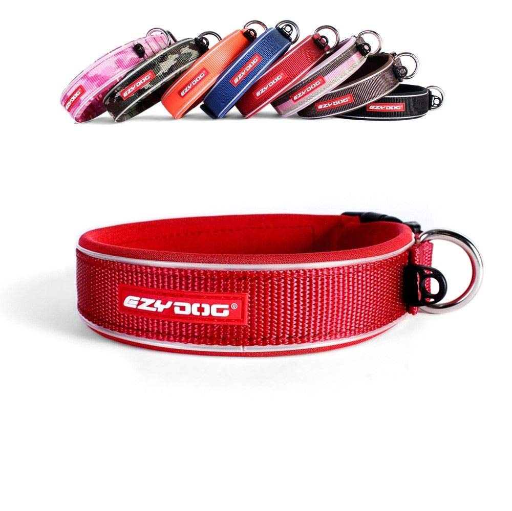 Product DescriptionThe EzyDog Neo Classic Dog Collar is super strong, super soft and built to last. Made from soft neoprene, it is very easy to clean, quick drying and waterproof. It is also non-porous, which drastically reduces any odour retention which can often be an issue with traditional collars. This neoprene is reinforced with nylon webbing for extra strength. As with all EzyDog collars, the D-Ring lead attachment is made from stainless steel which does not rust. The Neo Classic Collar also features hook and loop adjustment for simple resizing, a quick release buckle, separate ID attachment as well as reflective piping for extra visibility in low light.Box ContainsEach order comes with 1 x EzyDog Neo Dog Collar, Small(34-38cm), Red
