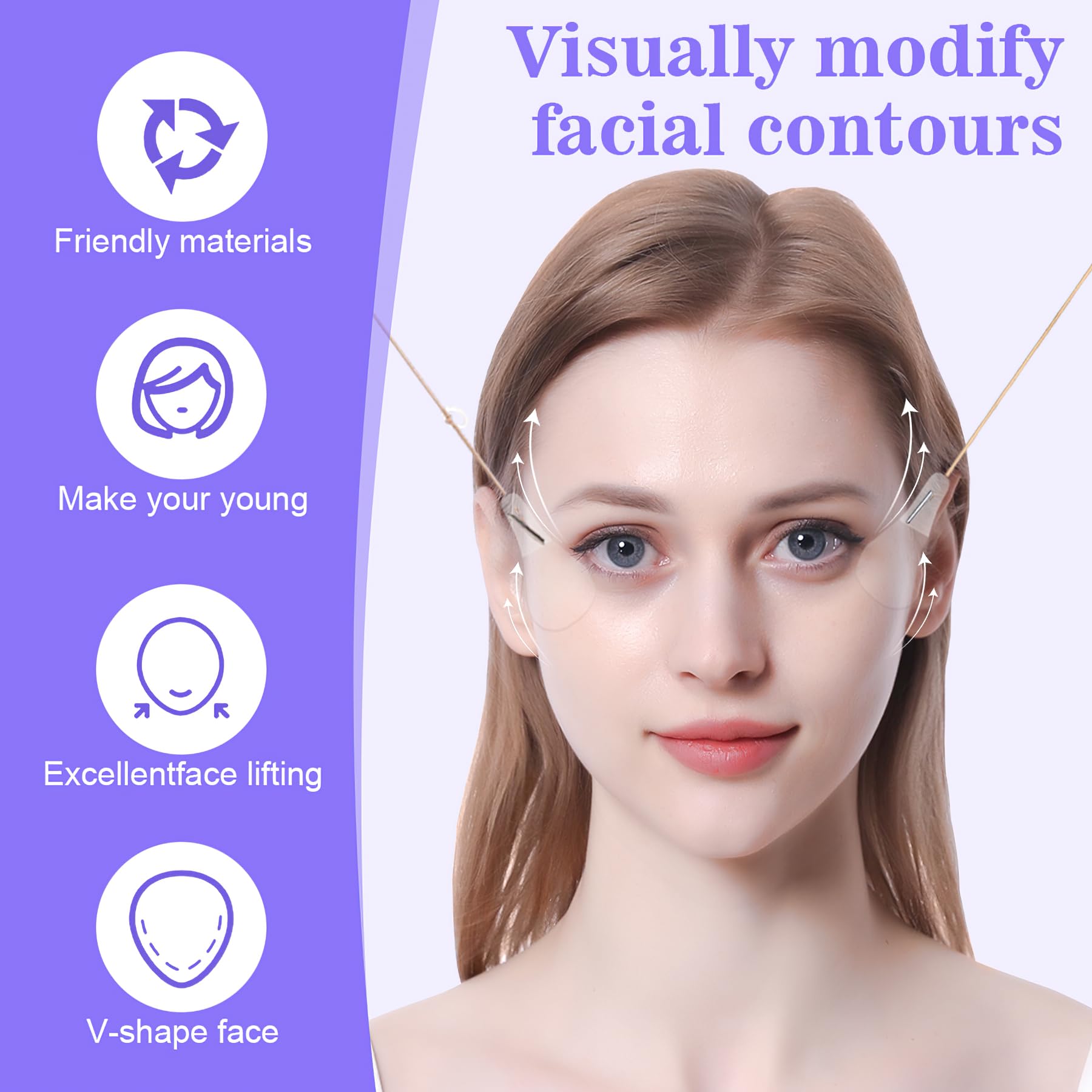 Face Lift Tapes, Invisible Stickers with Fixed Rope, Instant Wrinkle Lifting Patches Neck Eye Tape for V-Line Face(8pcs Elastic Bands 40pcs Replacement Tapes)