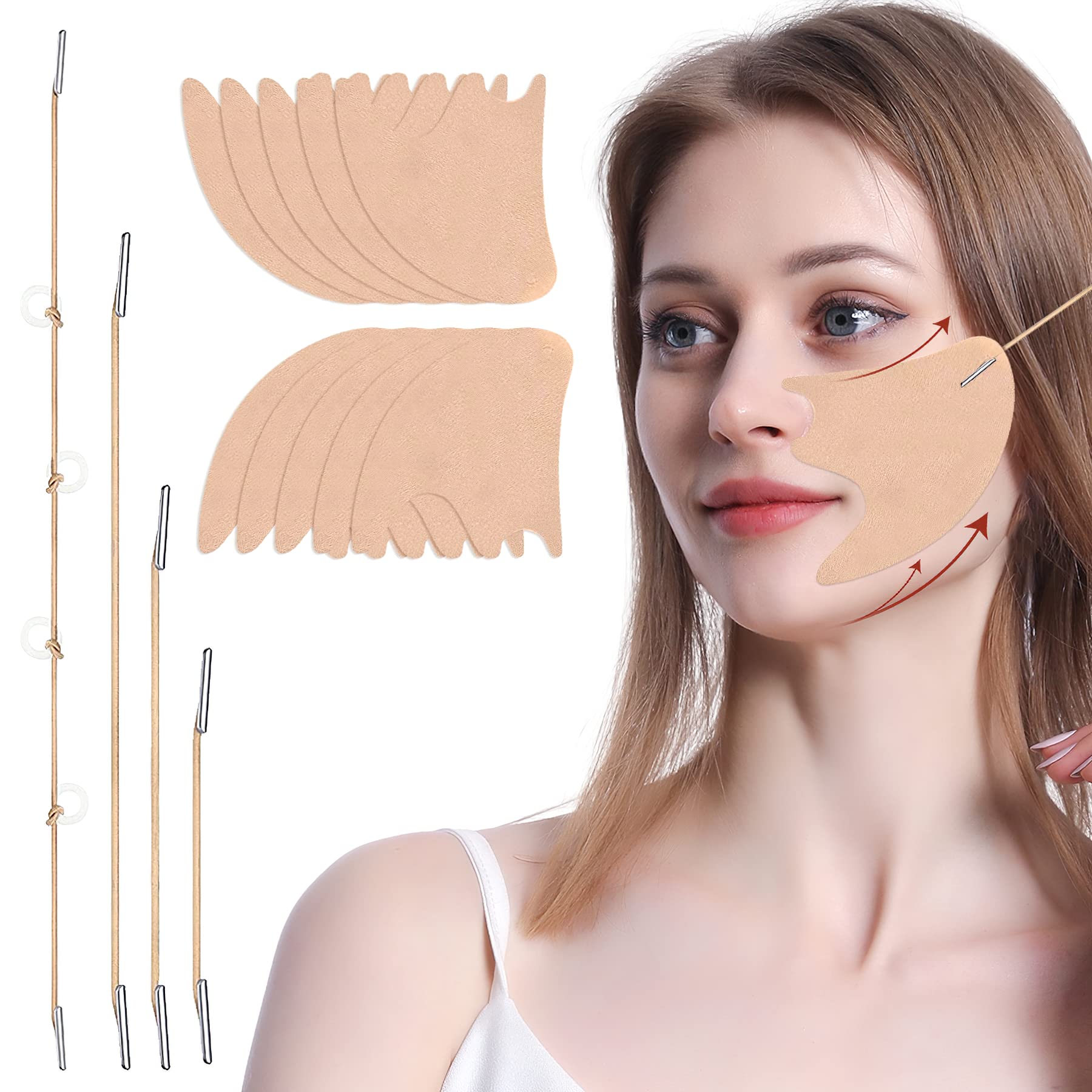 Face Lift Tapes Smile Lines Wrinkles Patches, Face Stickers Nasolabial Fold Lift Tape Home Use for Smooth Smile Lines (4pcs fixed ropes, 5 pairs replacement tapes) (Skin Tone Fabric)