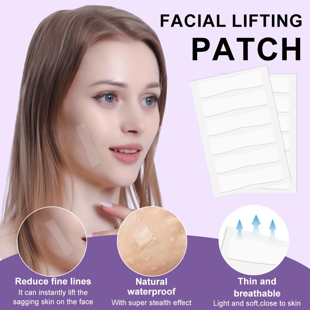 Face Lifting Tapes, 60pcs Face Lift Stickers Ultra-thin Invisible Face Tape for Instant Face Lifting, Hiding Facial Neck Wrinkles V-face Tightening Lifting Saggy Skin (Quadrangle Shape Face Tapes)