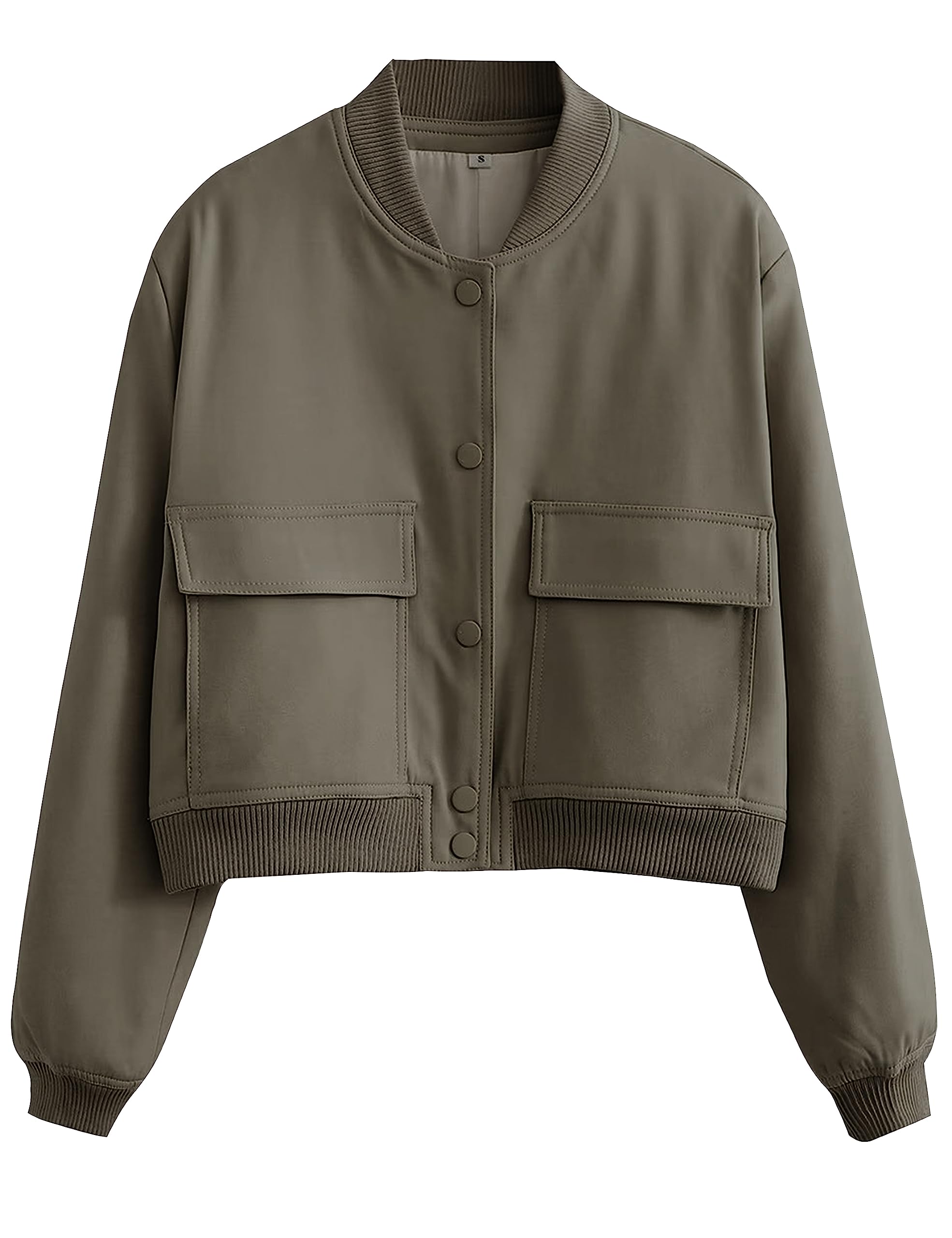 Faleave Women's Cropped Bomber Jacket Casual Street Button Down Varsity Jacket with Two Big Pockets(Grey-M)