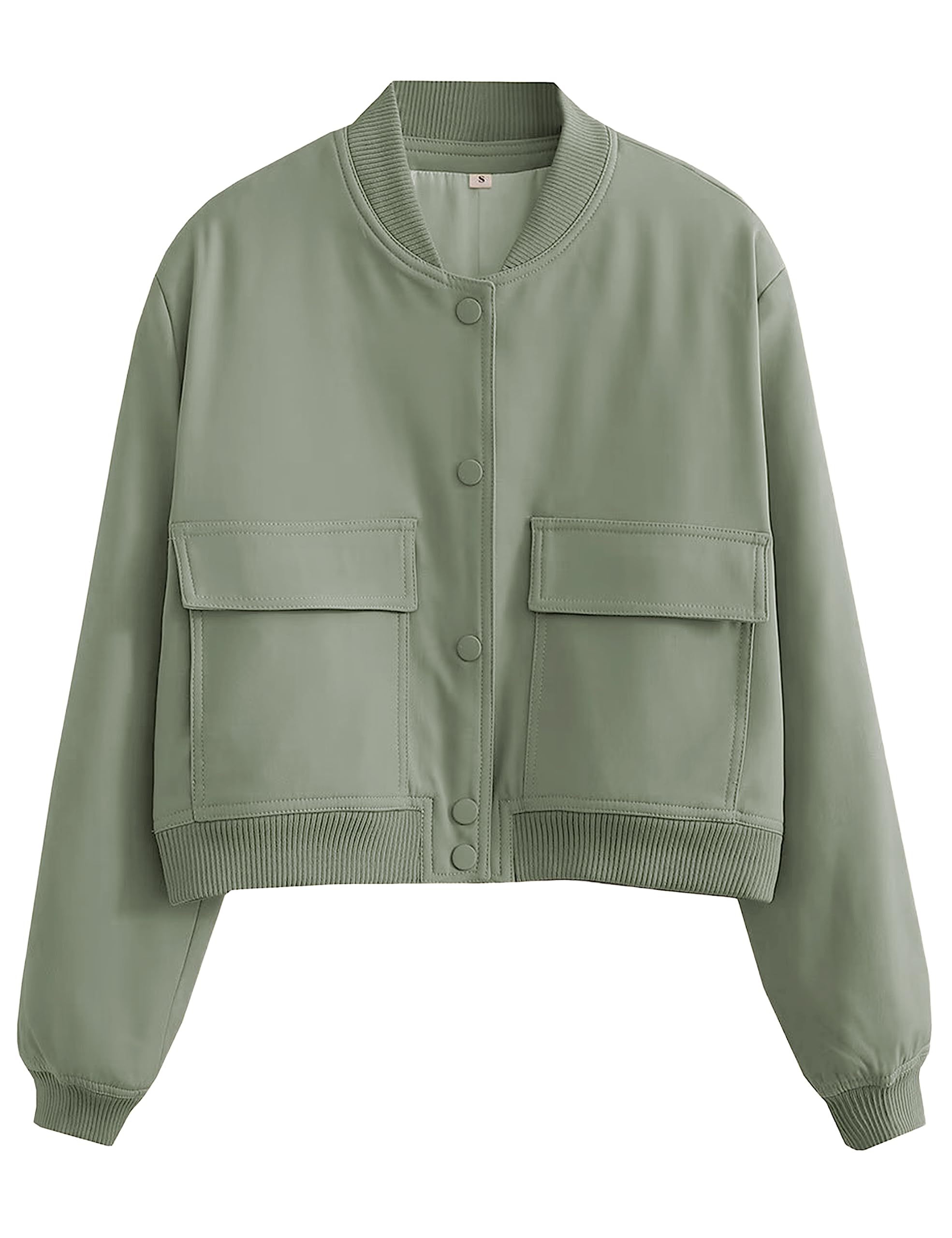 Faleave Women's Cropped Bomber Jacket Casual Street Button Down Varsity Jacket with Two Big Pockets(Peagreen-M)