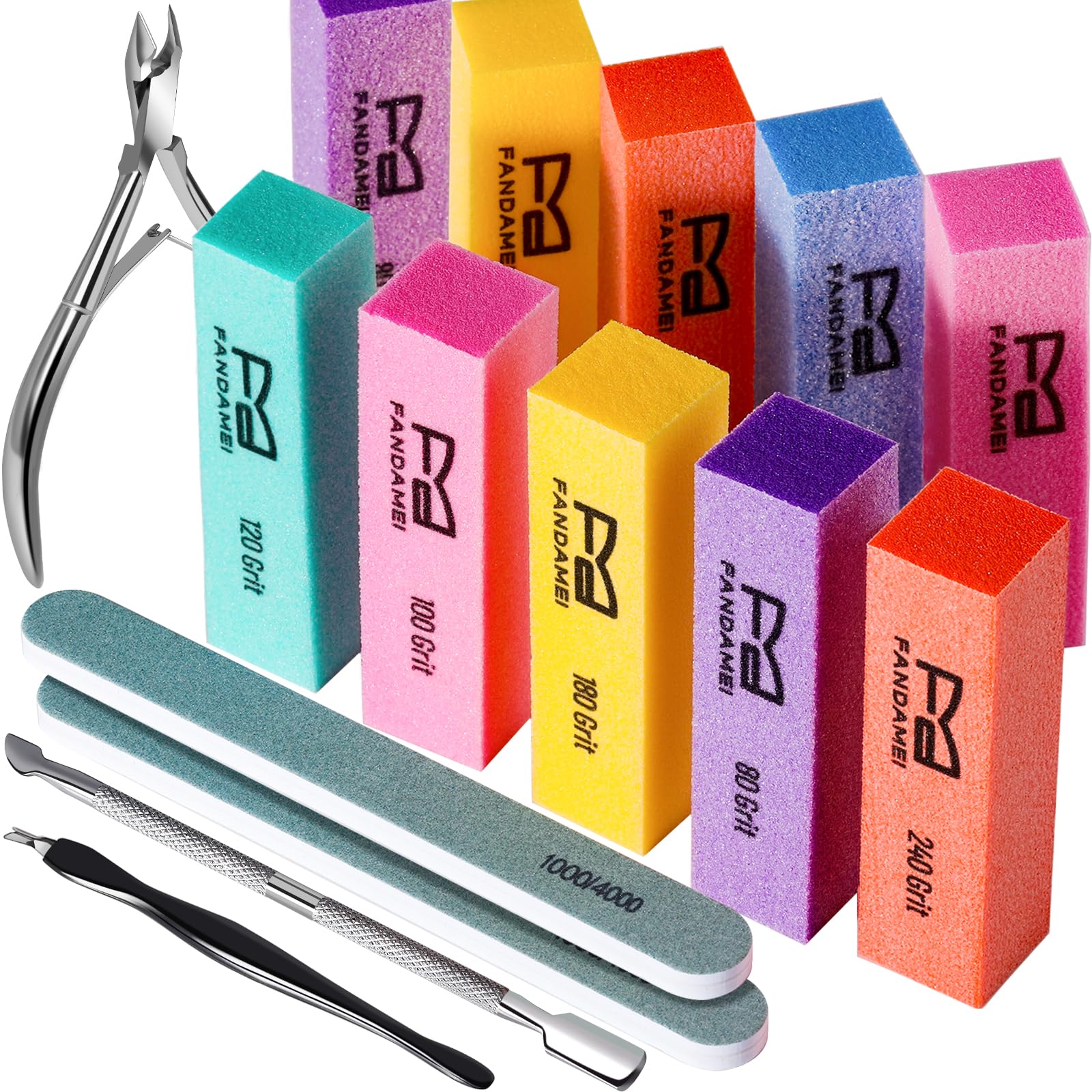 FANDAMEI Nail Buffer, 10 PCS Nail Buffer Block With Different Grit, Nail Buffers, Nail Buffing Block, Cuticle Trimmer, Cuticle Pusher, Nail Care Tool Kit, Nail Tools, Nail Kit, Manicure Tools